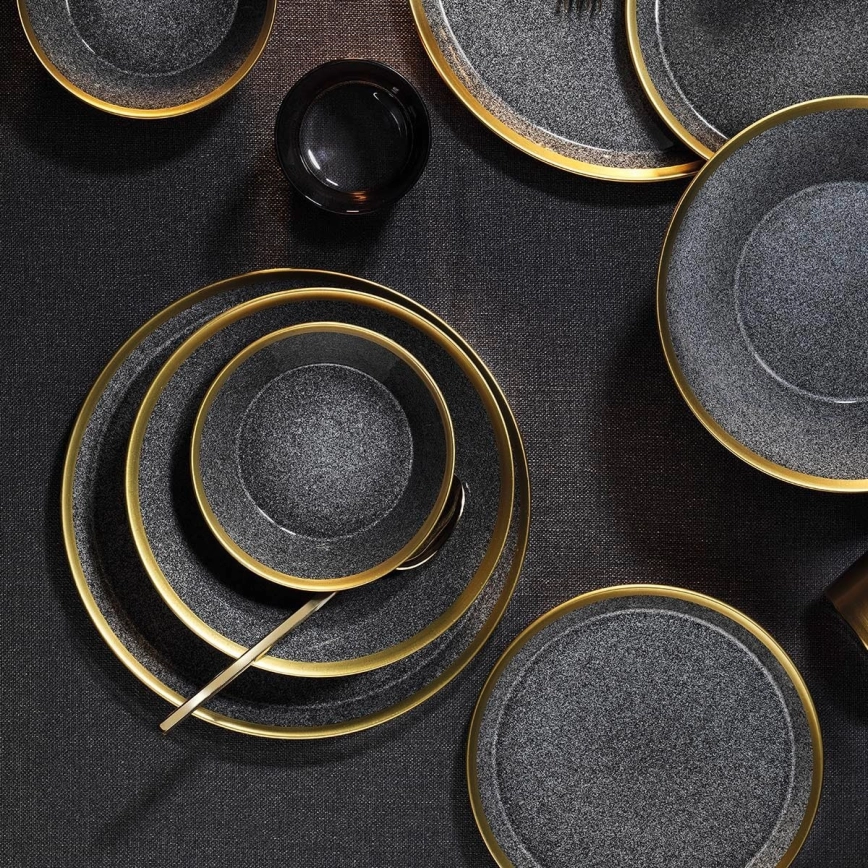 16-teiliges Geschirrset Anthrazit/Gold, Porzellan