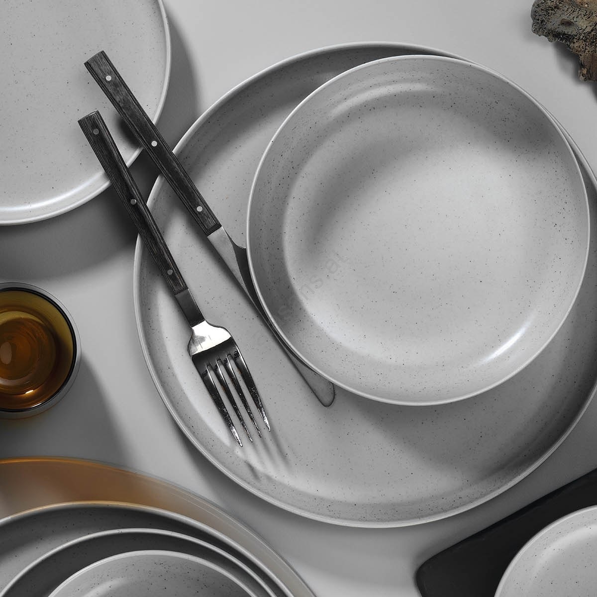• Hergestellt aus 100% Porzellan (Zusammensetzung: Kaolin, Quarz, Feldspat), das hohe Widerstandsfähigkeit und lange Lebensdauer gewährleistet.