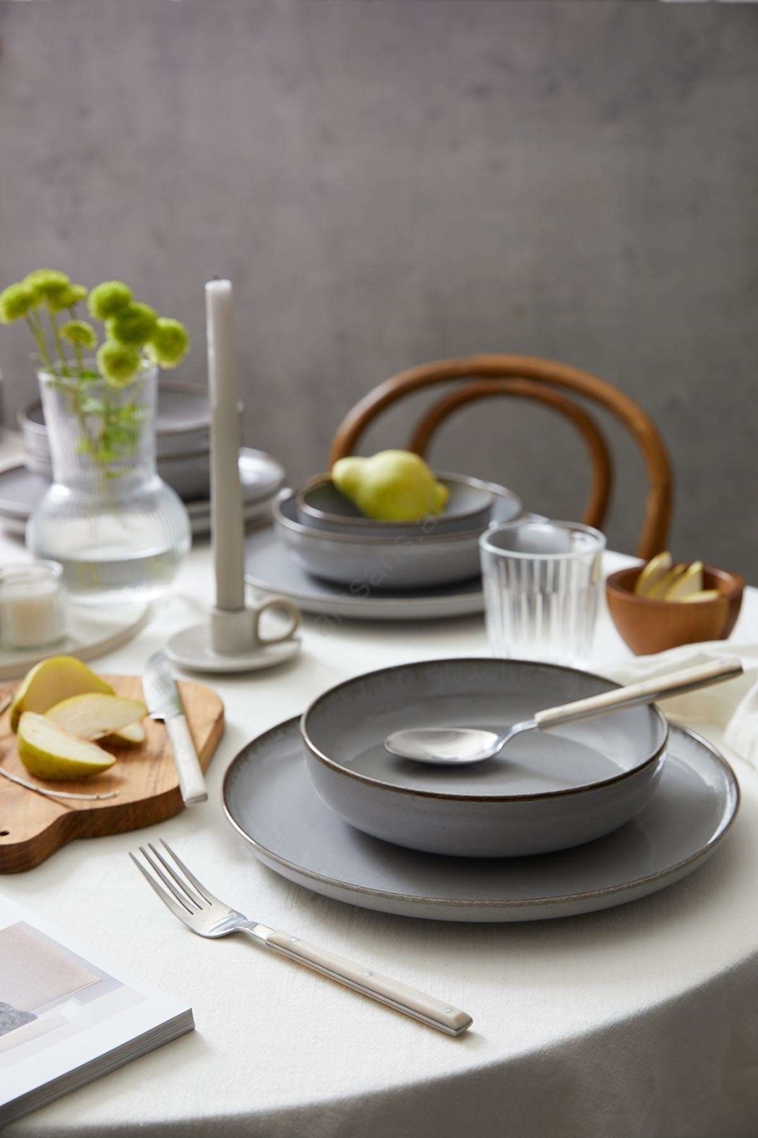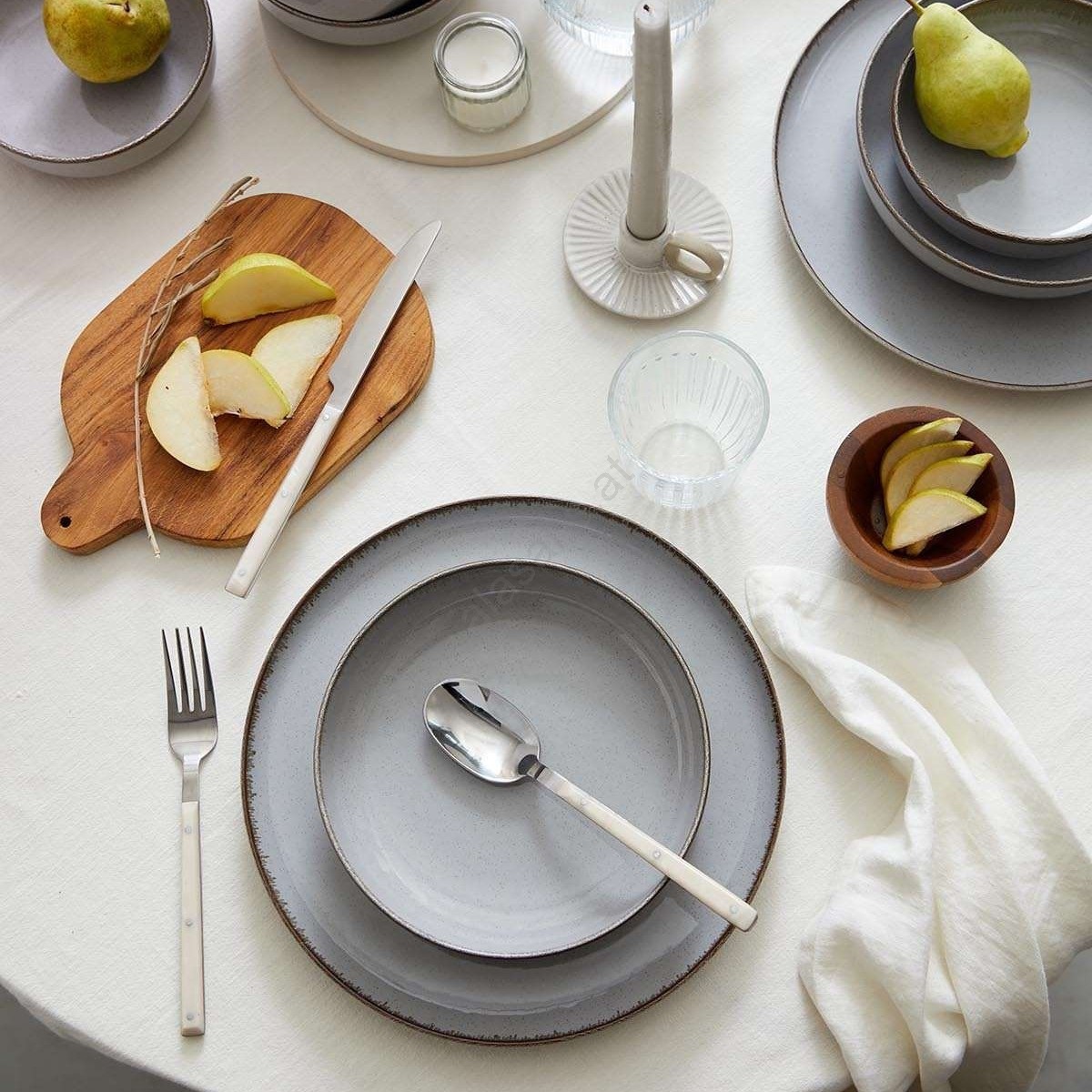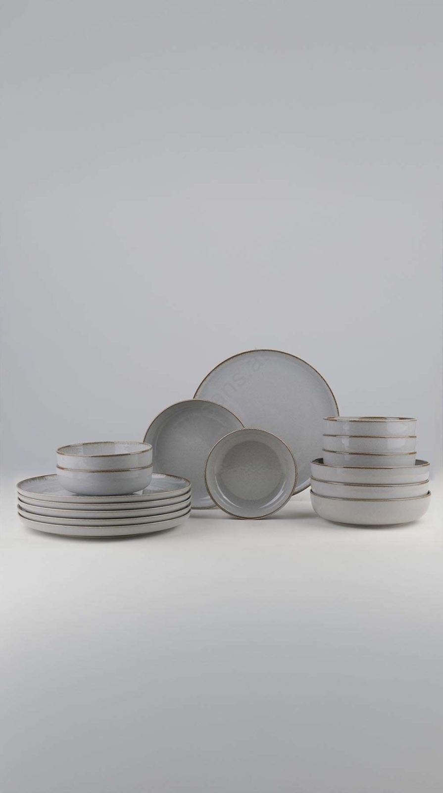 18-teiliges Geschirrset, grau/Porzellan