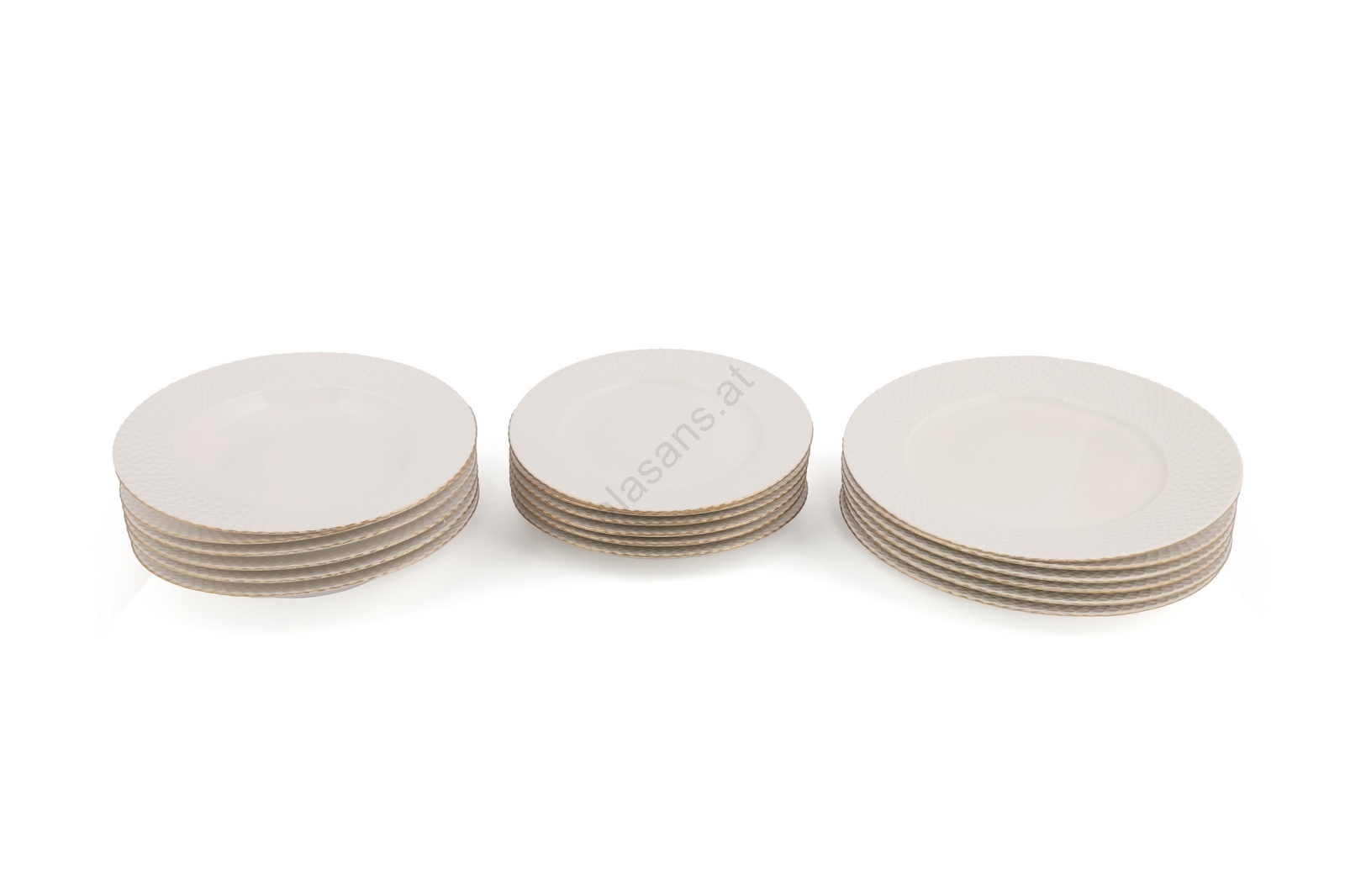 18-teiliges Porzellan-Geschirrset, weiß/gold