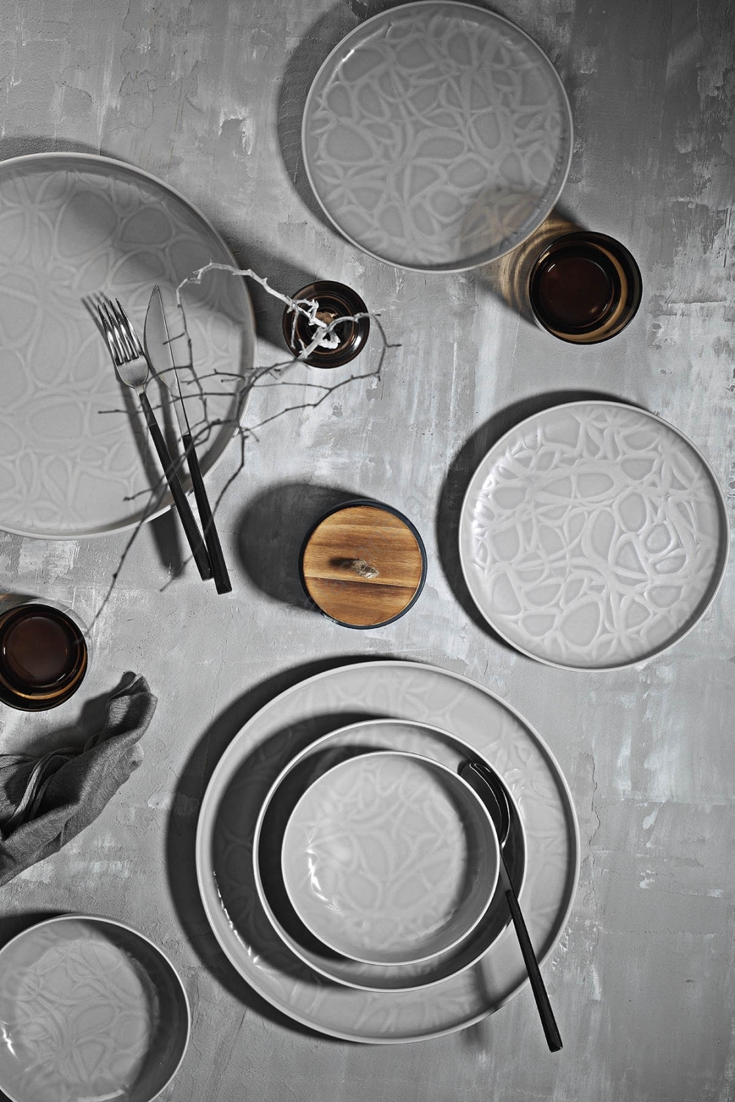 24-teiliges Geschirrset, grau/Porzellan