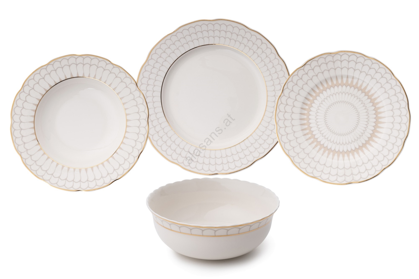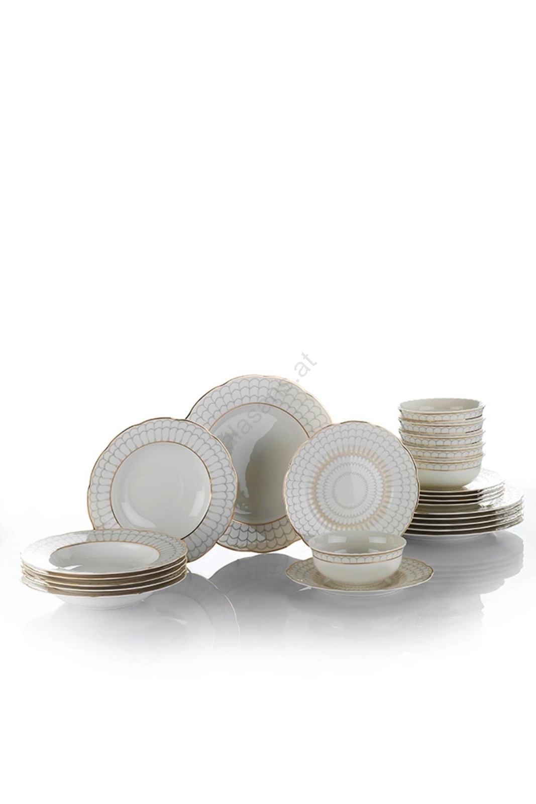 24-teiliges Tafelservice, weiß/gold, aus Porzellan