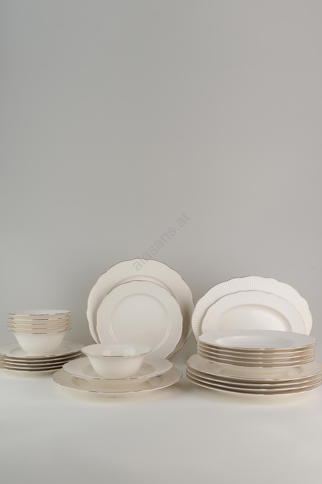 26-teiliges Geschirrset aus Porzellan, weiß/silber/elfenbein