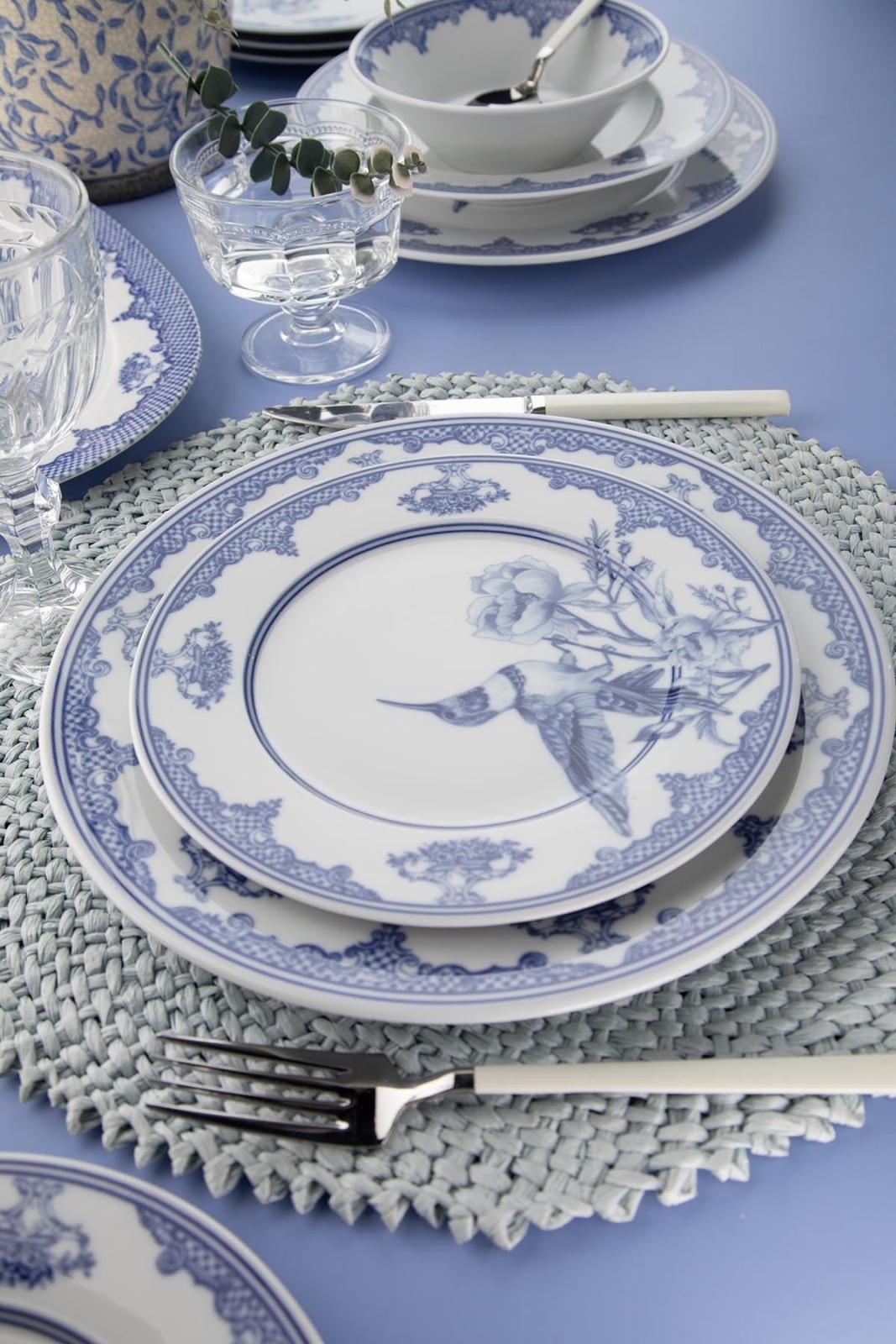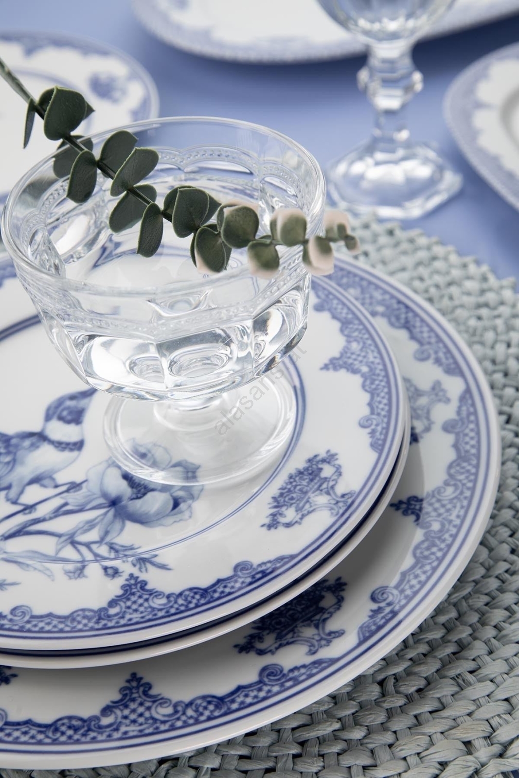 26-teiliges Geschirrset, weiß/blau, Porzellan