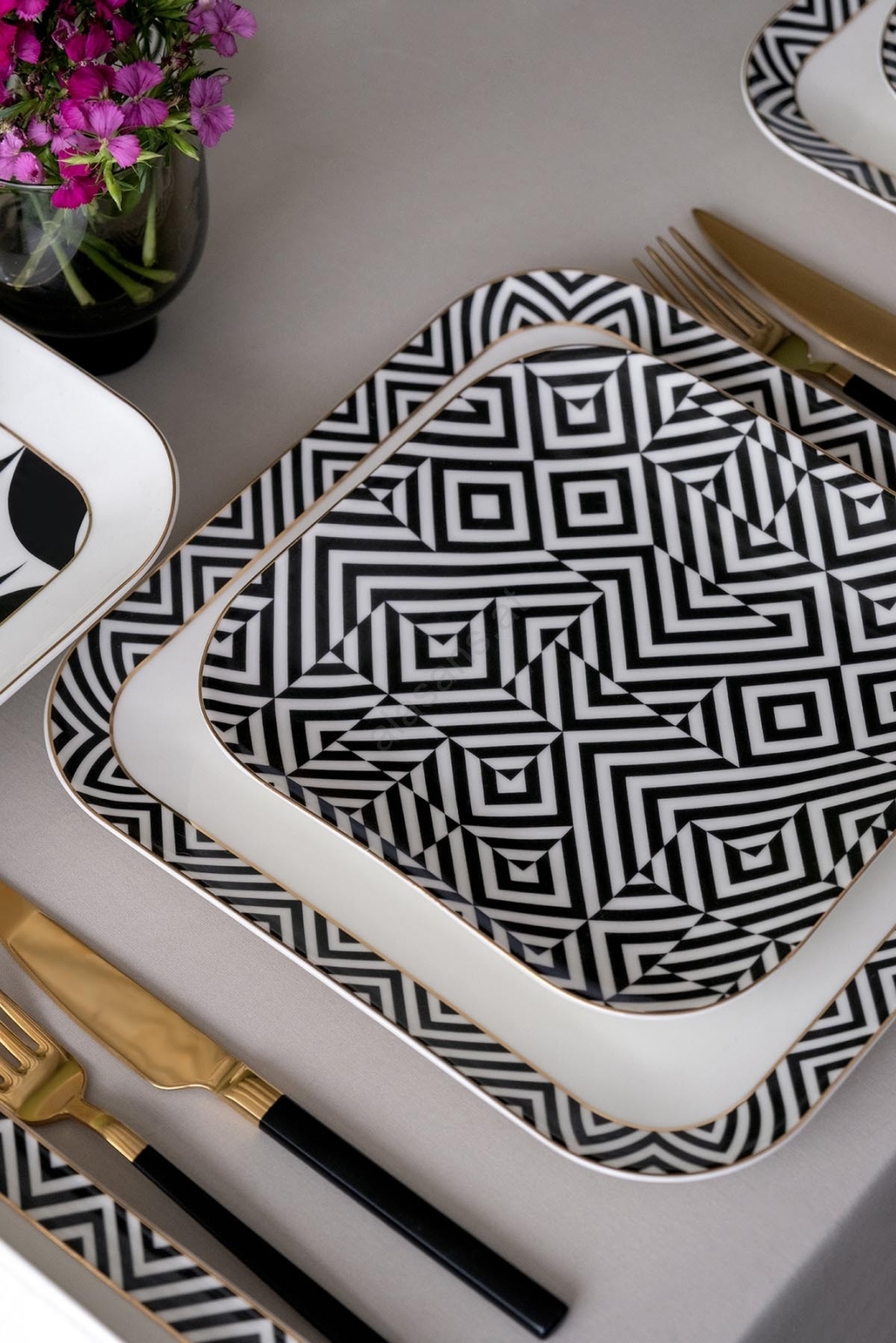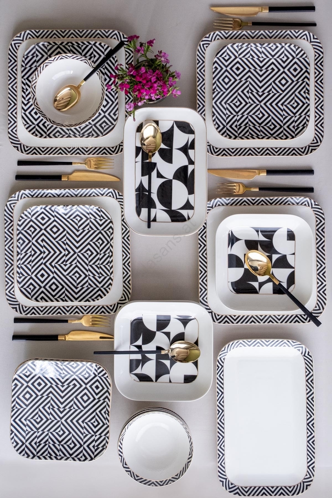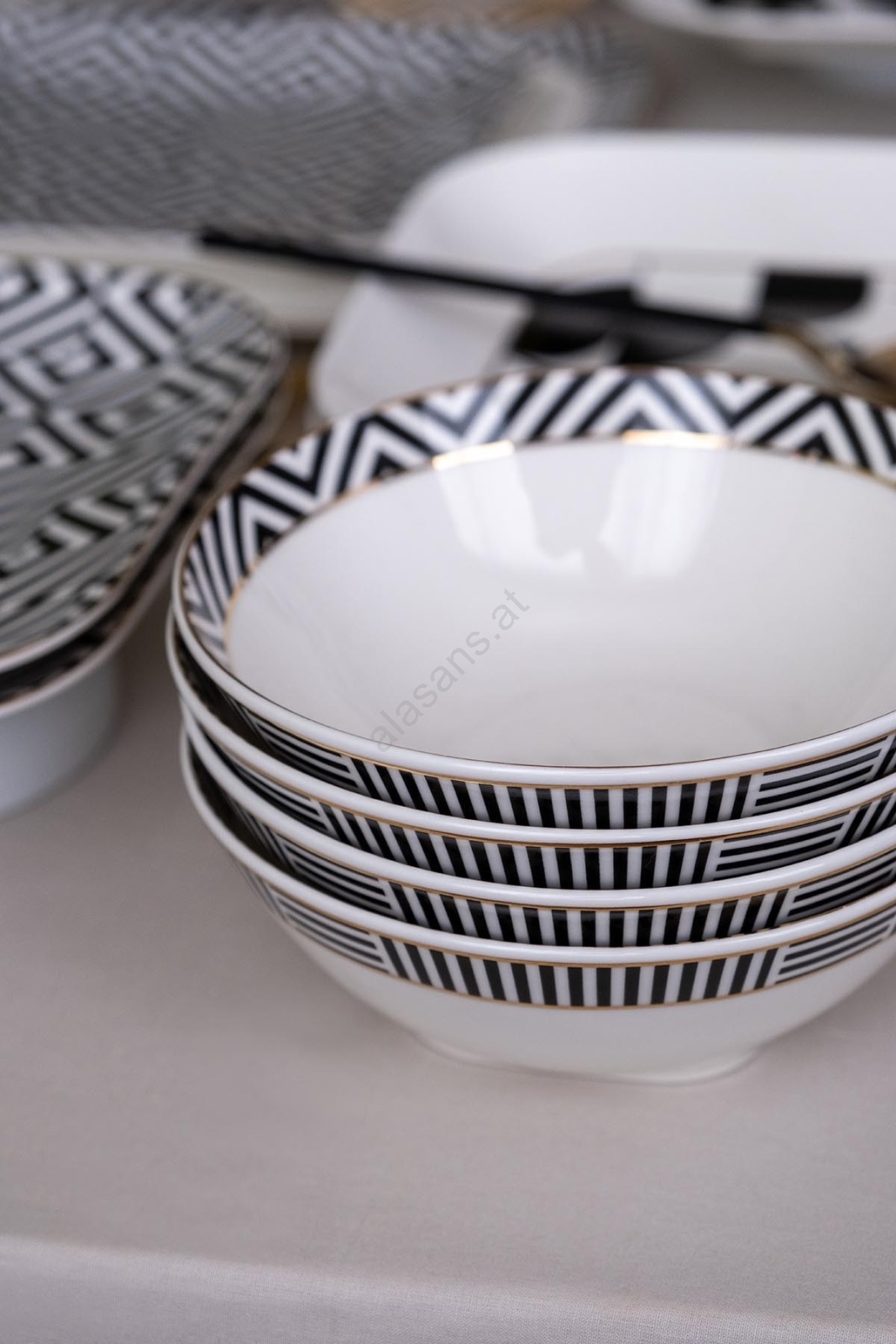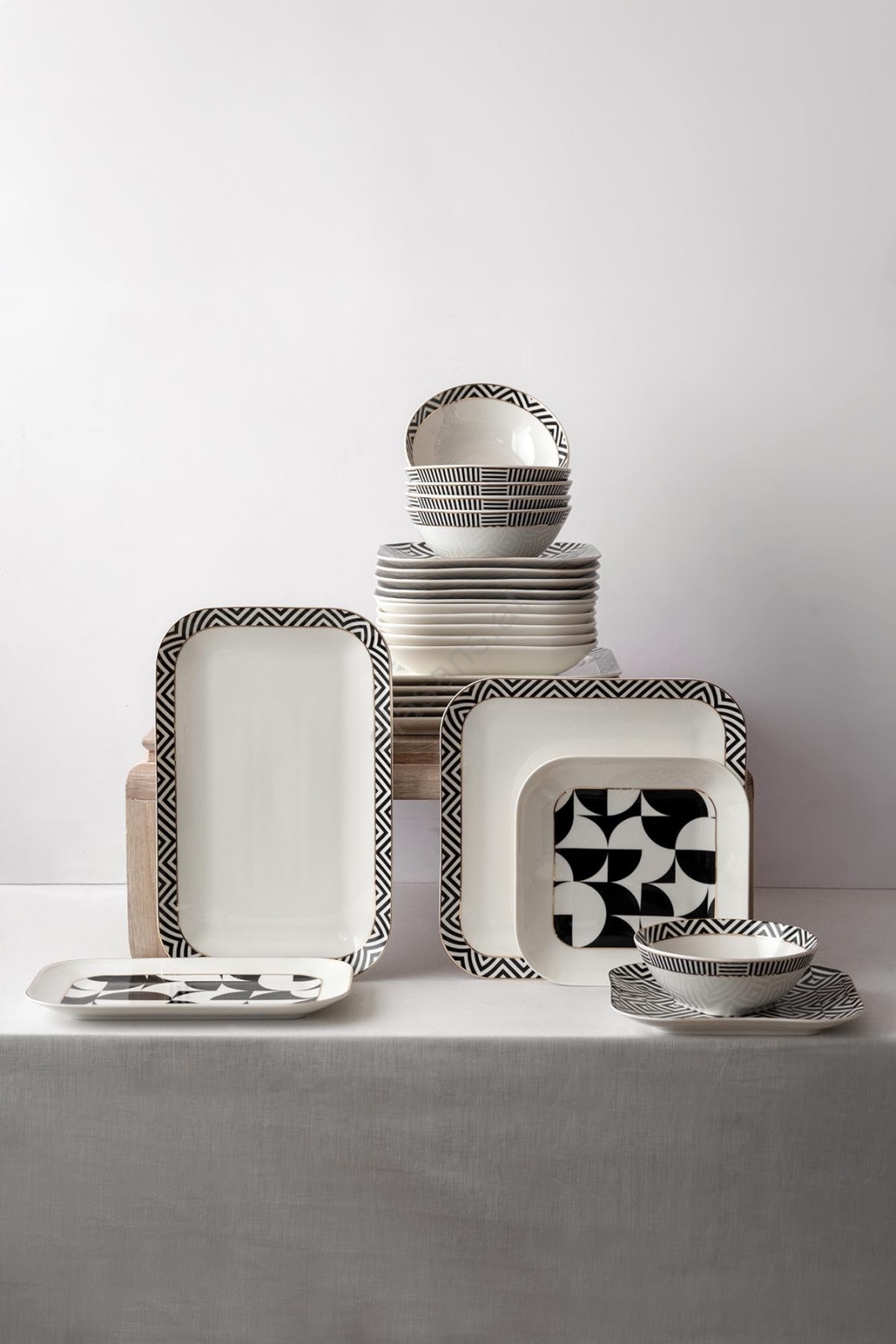 26-teiliges Geschirrset, weiß/schwarz, Porzellan