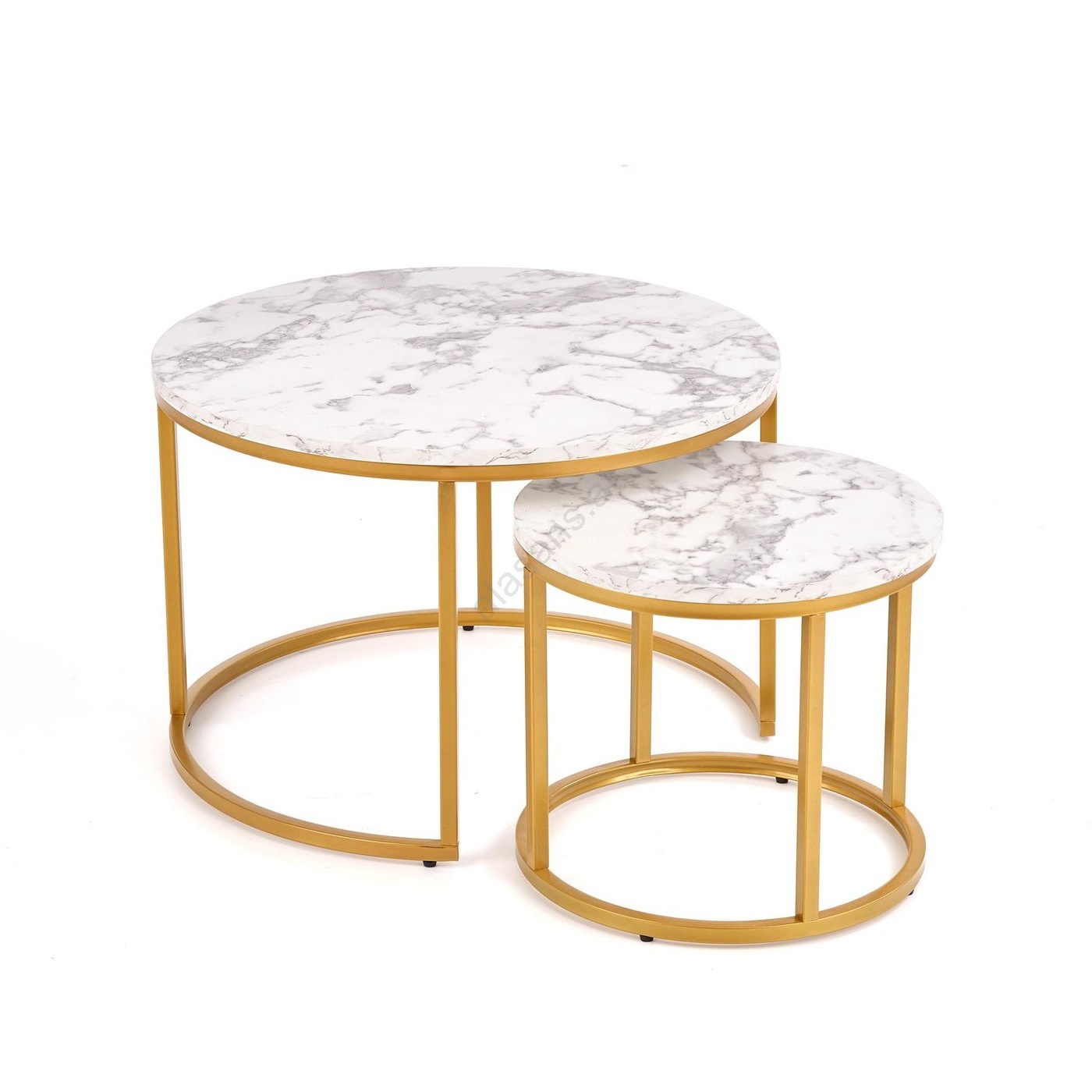 2er-Set Couchtisch PACILA, Marmor-Optik/goldfarben