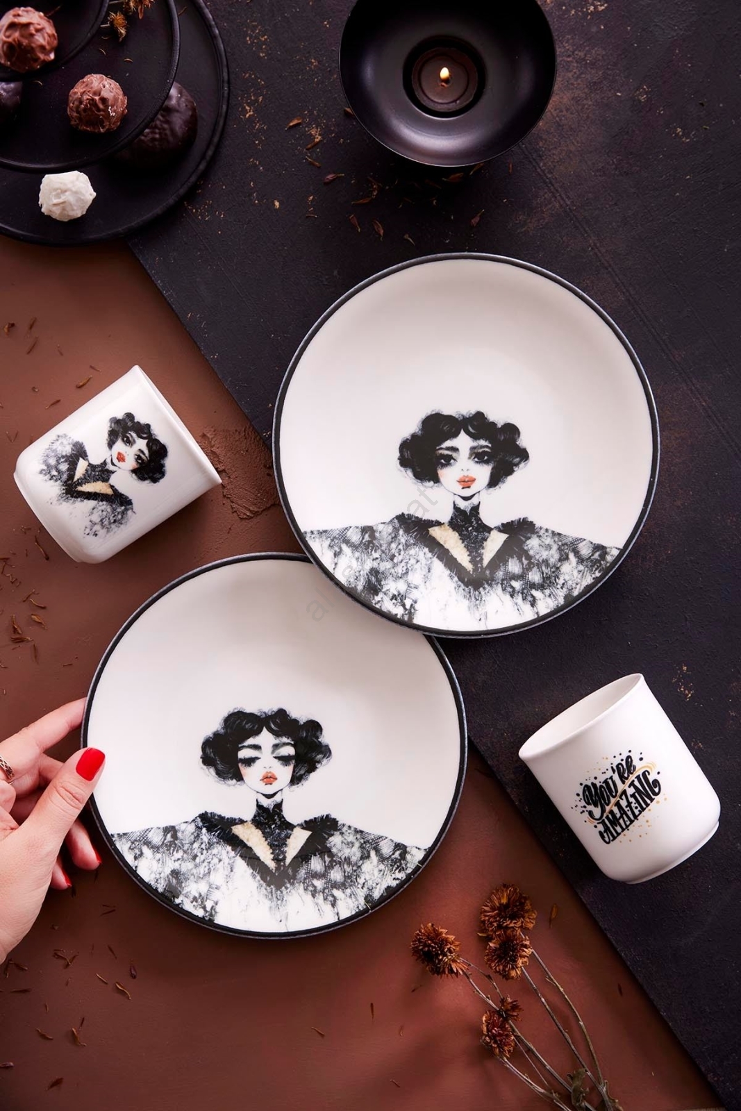 4-teiliges Ess-Set, schwarz/weiß, Porzellan