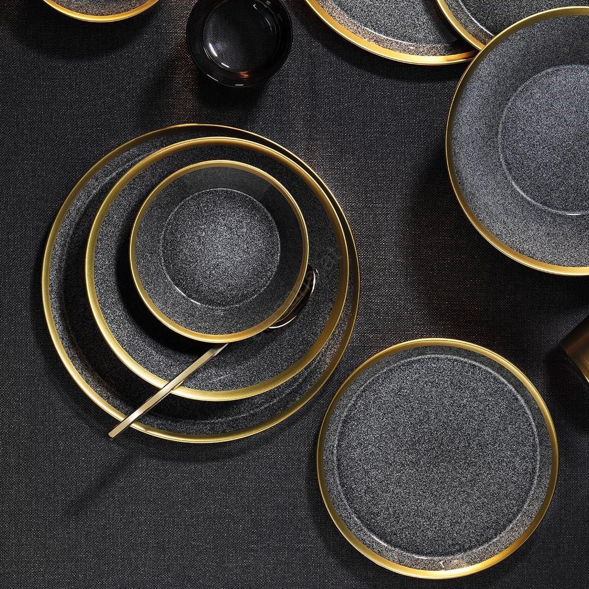 8-teiliges Porzellan-Geschirrset, Schwarz/Gold