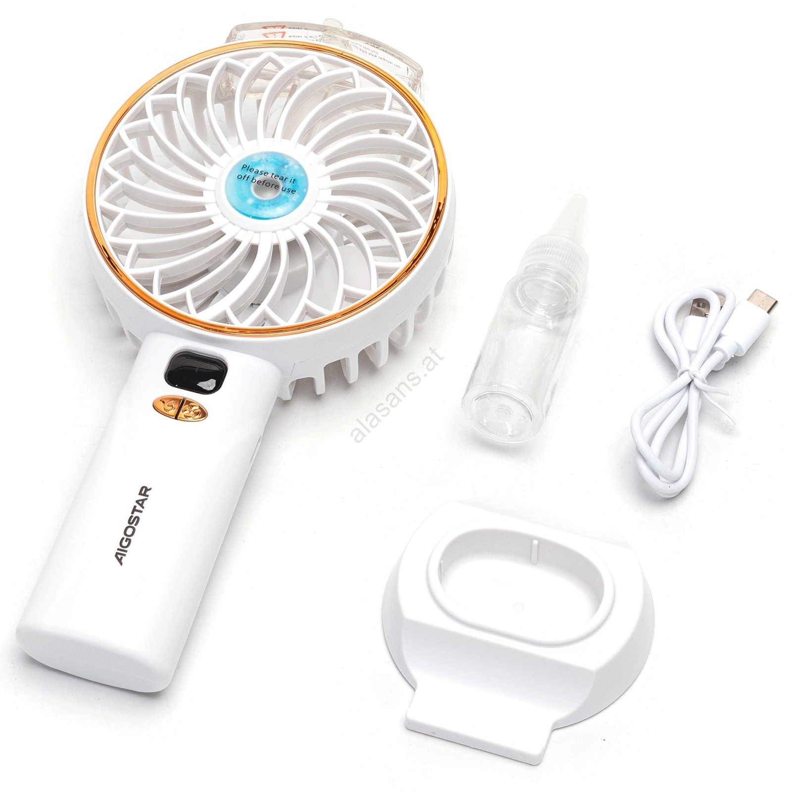 Aigostar - Aufladbar pocket Ventilator 5W/5V 2400mAh USB weiß