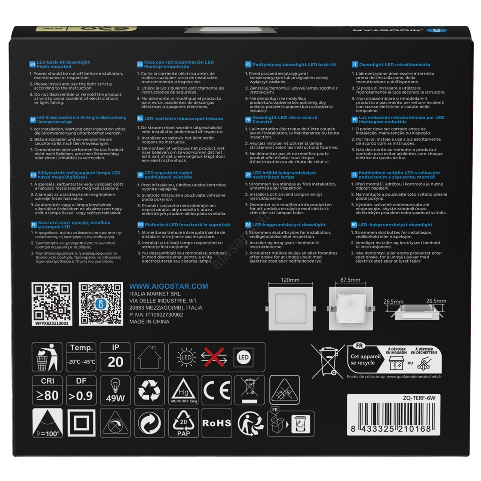 Aigostar - LED Einbauleuchte LED/6W/230V 4000K 12x12 cm weiß