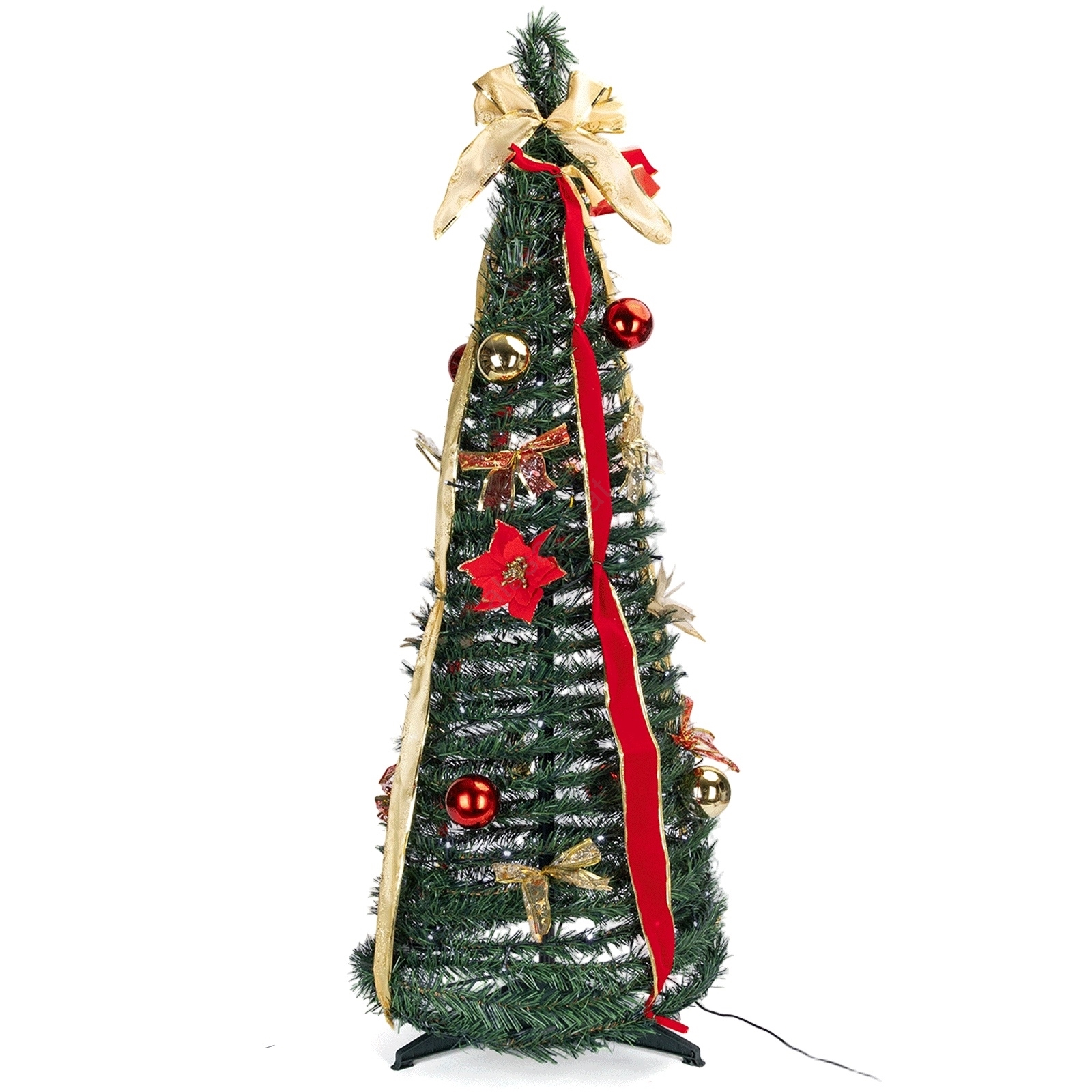 • Aigostar - LED-Außen-Weihnachtsbaum, 80 LEDs, 1,2 m, IP44, rot/gold, warmweiß