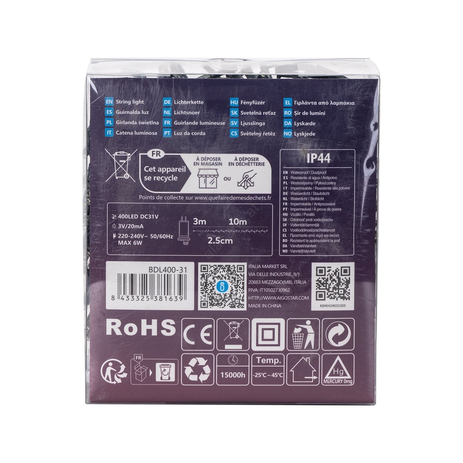 • Aigostar - LED-Lichterkette für den Außenbereich, 400 LEDs / 8 Funktionen, 13 m, IP44, kaltweiß