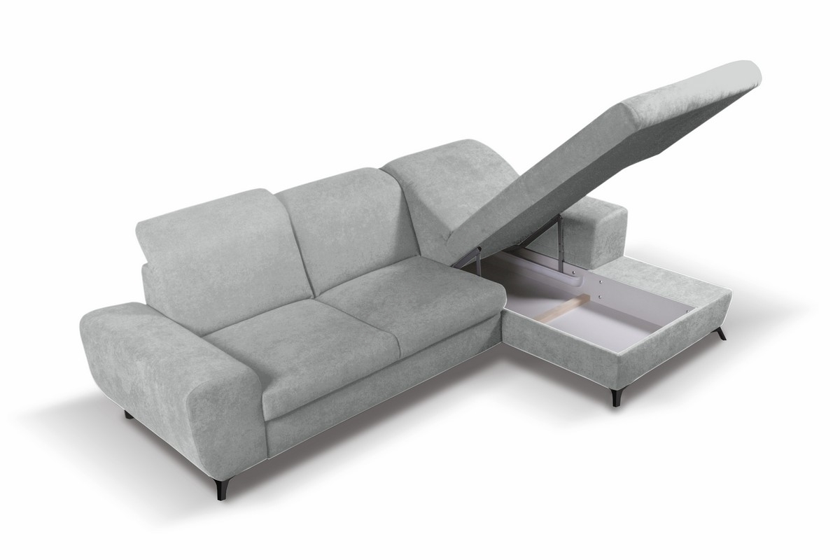 • Ausziehbares, gepolstertes Ecksofa ALTA in L-Form mit Stauraum, links, grau