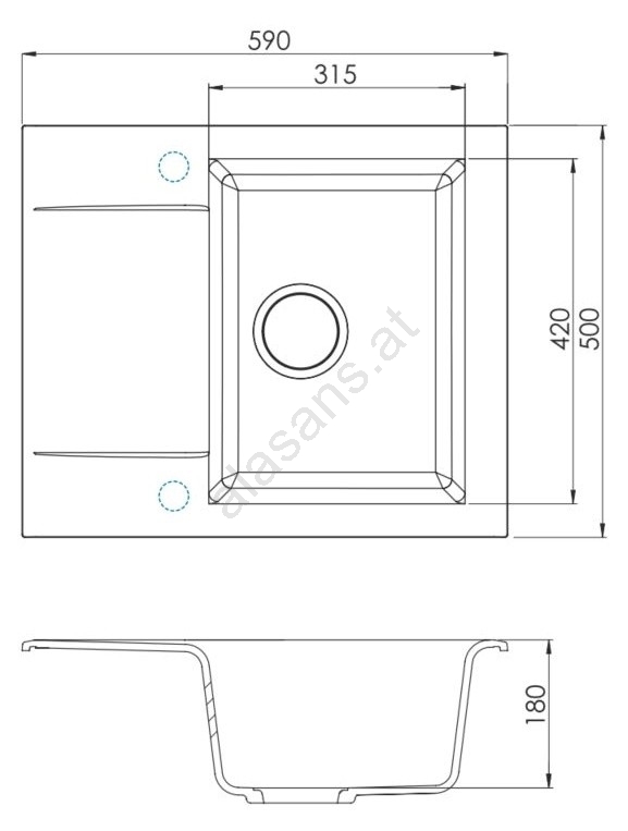• Lieferumfang: Granitspüle, Siebkorbventil 3 1/2, Siphon mit Anschluss für die Geschirrspülmaschine, Spültischarmatur, Anschlussschläuche, Montagepaket.