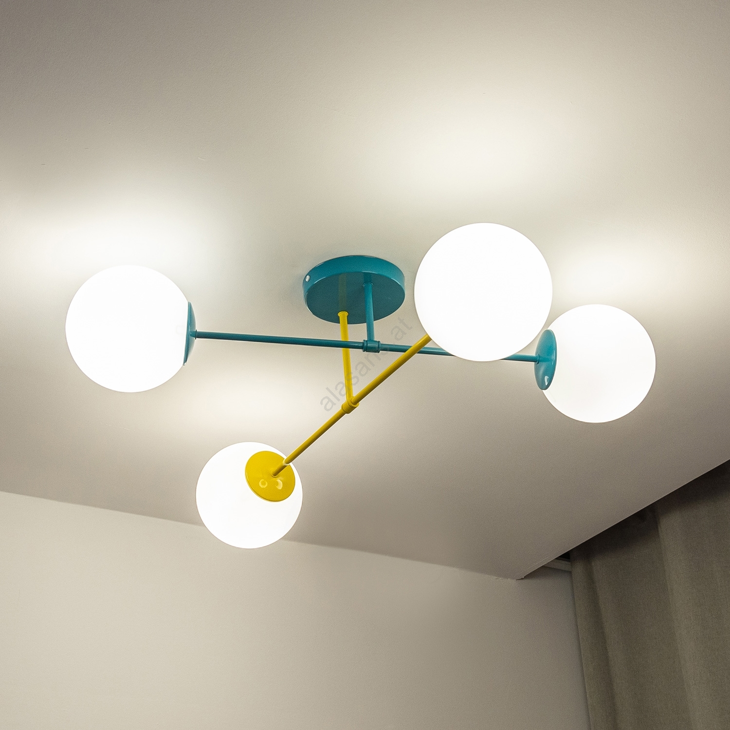 Aufgesetzte Deckenleuchte MOON 4xE27/15W/230V türkis/gelb zeichnet sich durch schönes und funktionales Design aus. Eine Glühbirne mit E27 Sockel ist für die Leuchte geeignet. Hier, können Sie andere Glühlampen zu vorteilhaften Preisen kaufen. Sie erhalten eine attraktive Ergänzung für Ihr Zuhause.