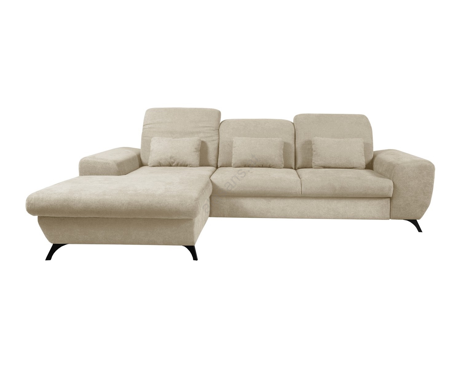 Gepolsterte Eckcouch ALTA, L‑Form, links, mit Schlaffunktion und Stauraum, beige
