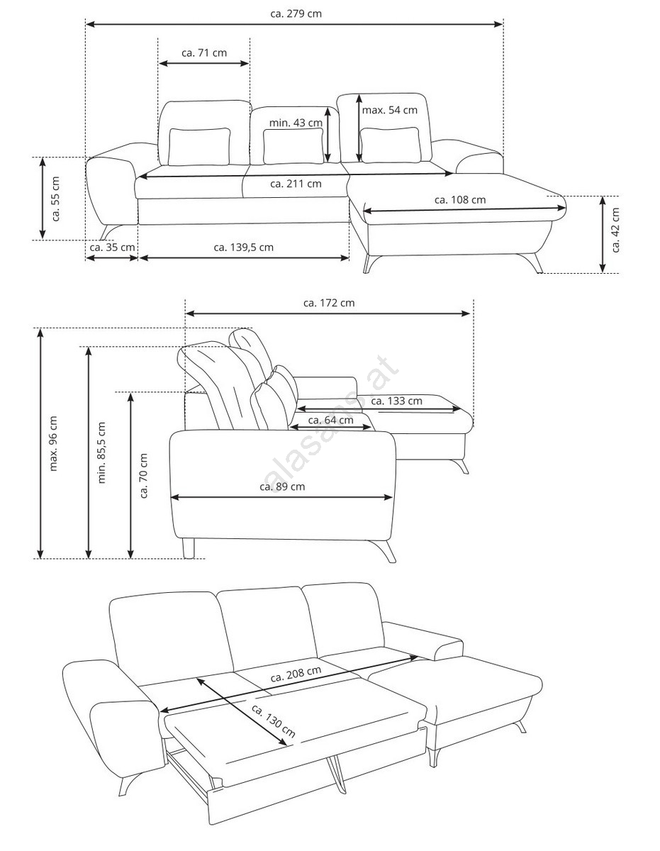 • Das Sofa verfügt über einen geräumigen Stauraum für Bettwäsche und andere saisonale Gegenstände.