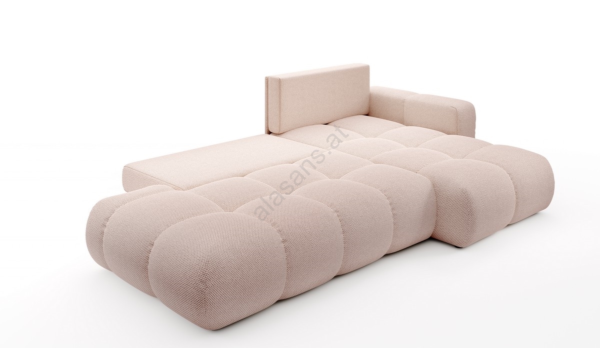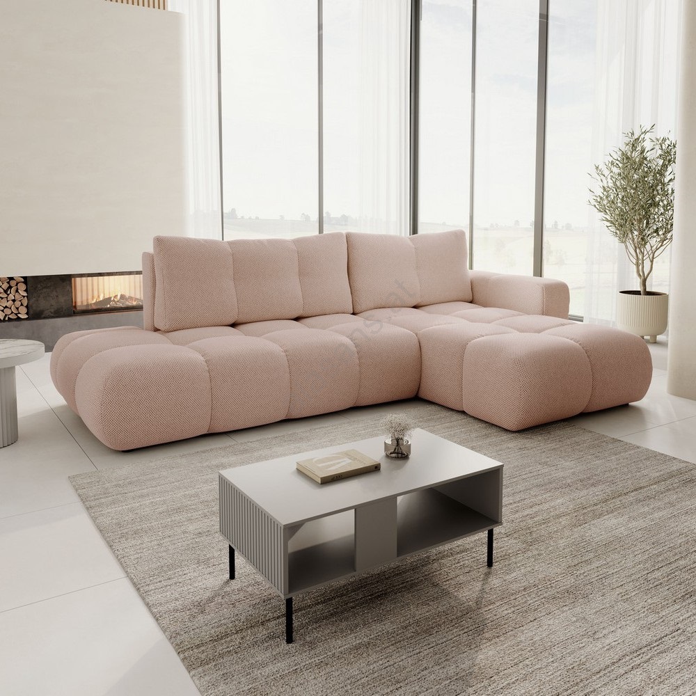 • ALMADA ausziehbare, gepolsterte Eckcouch mit Stauraum, L-Form, rechts, rosa
