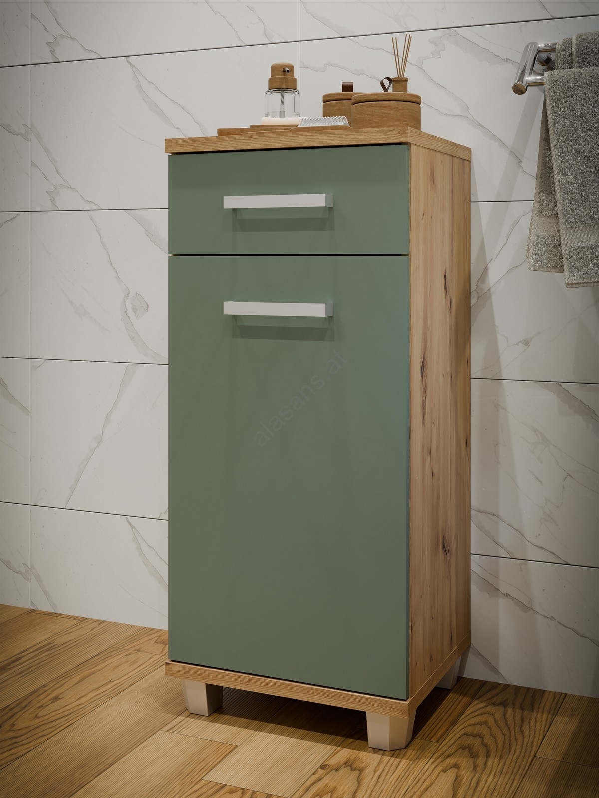 • Badezimmerschrank VENOM grün/Artisan-Eiche