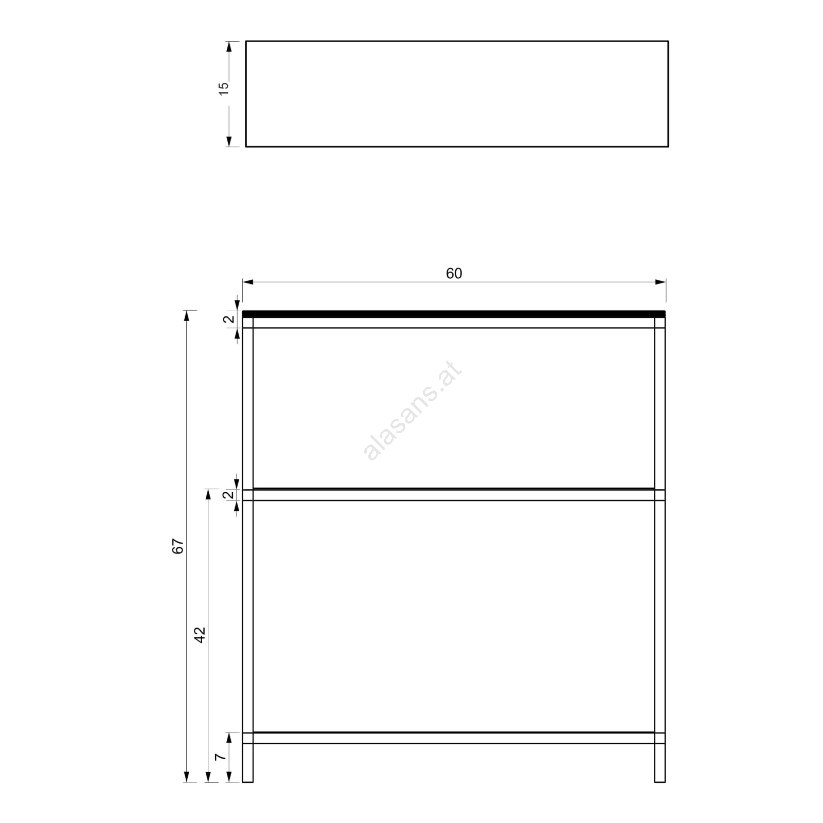 • Drei Ablagen für Toilettenartikel, gefaltete Handtücher usw.