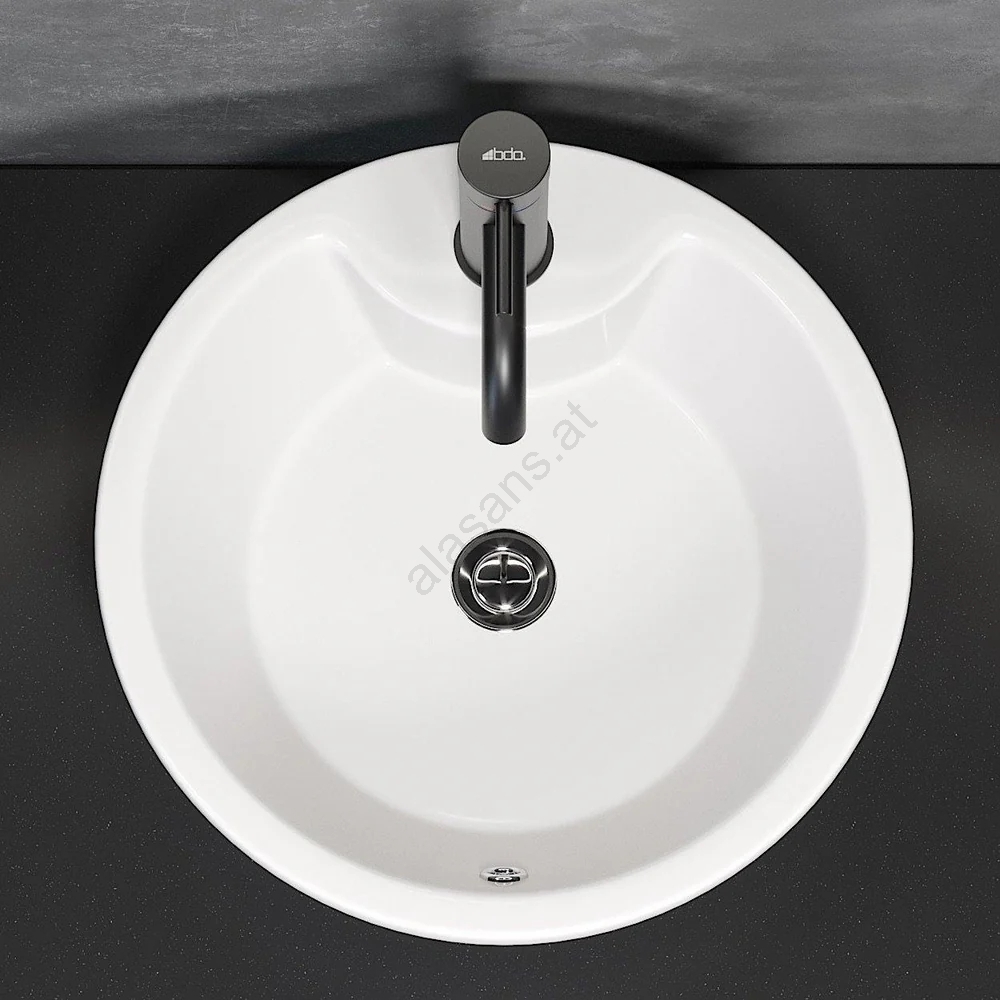 • Das Waschbecken ist für die Aufsatzmontage auf Waschtischplatten vorgesehen und ermöglicht so flexible Platzierung sowie die Kombination mit verschiedenen Waschtischplatten.