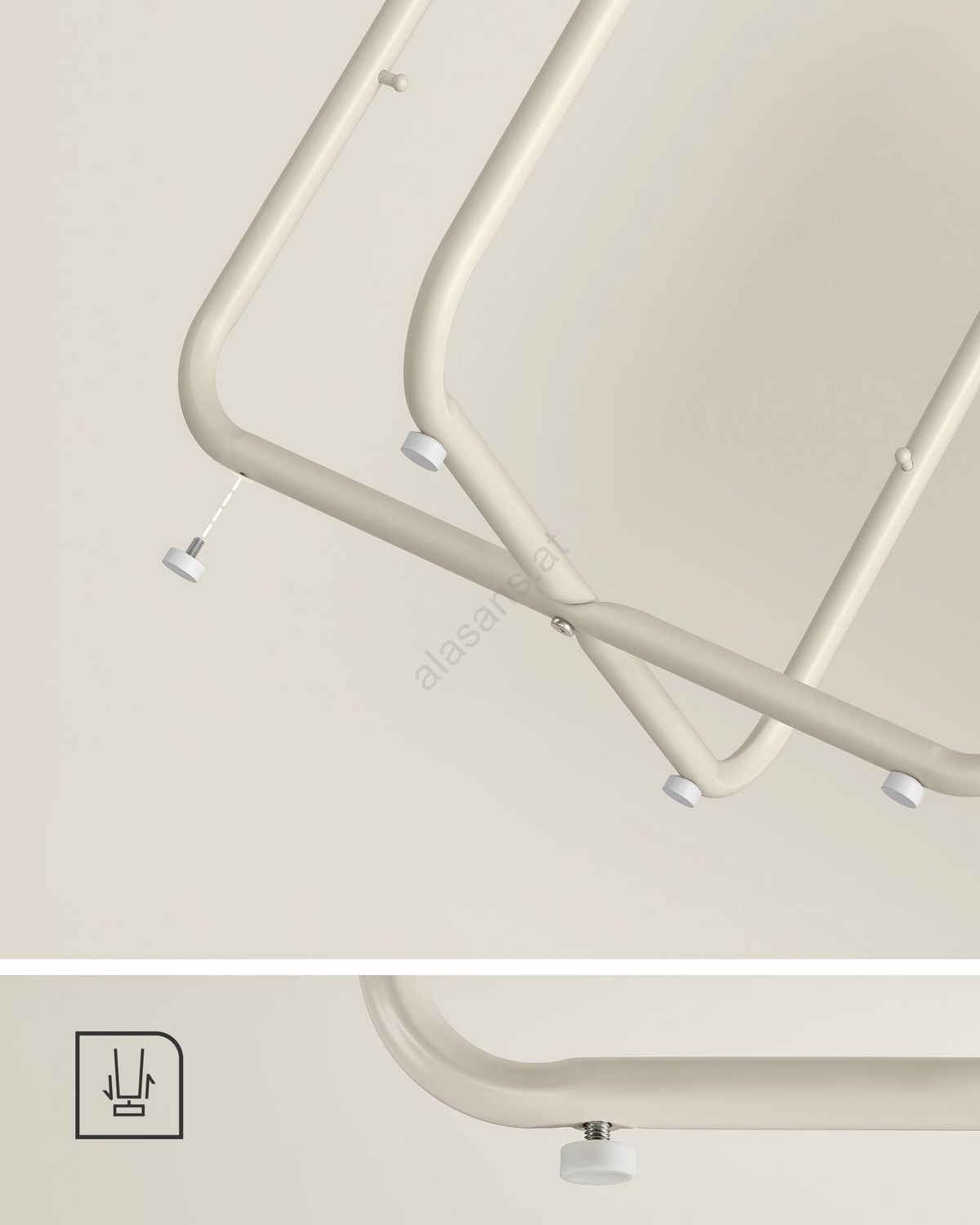 • Verstellbare Füße helfen, ihn gerade und stabil auch auf leicht unebenem Untergrund auszurichten.