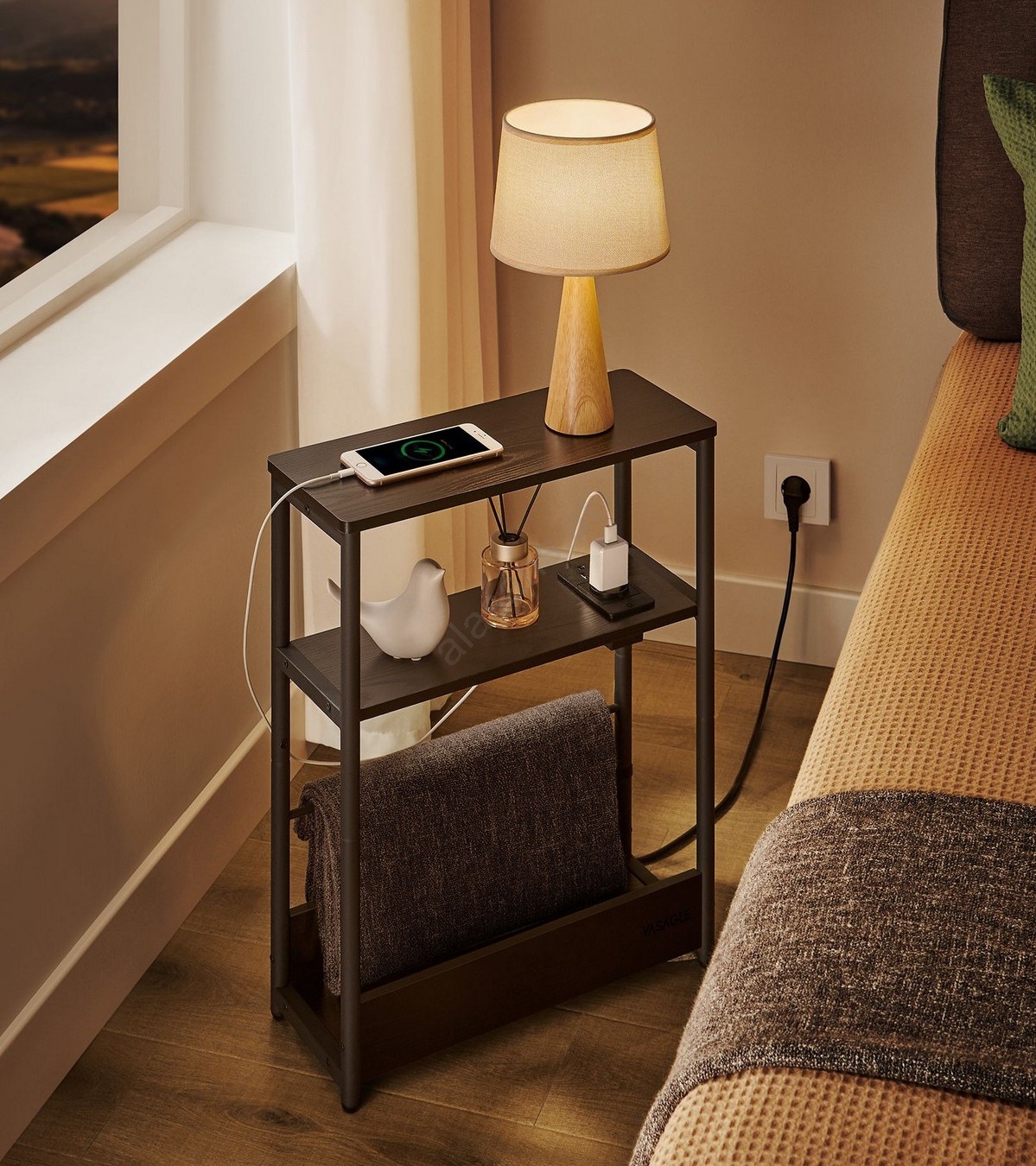 • Beistelltisch ROD mit integrierter Steckdose und USB-Anschlüssen, braun/schwarz