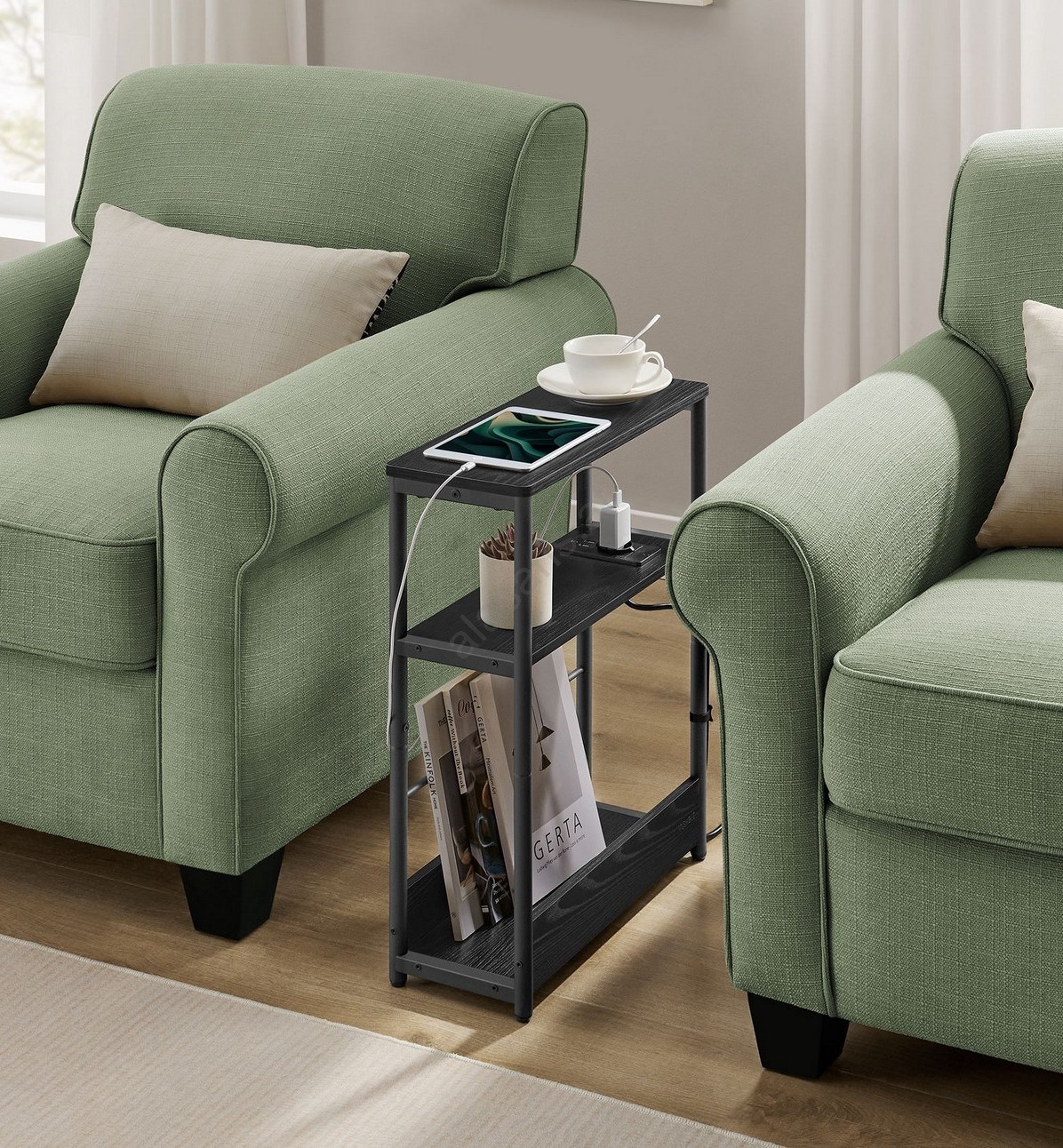 Beistelltisch ROD mit integrierter Steckdose und USB-Anschlüssen, schwarz