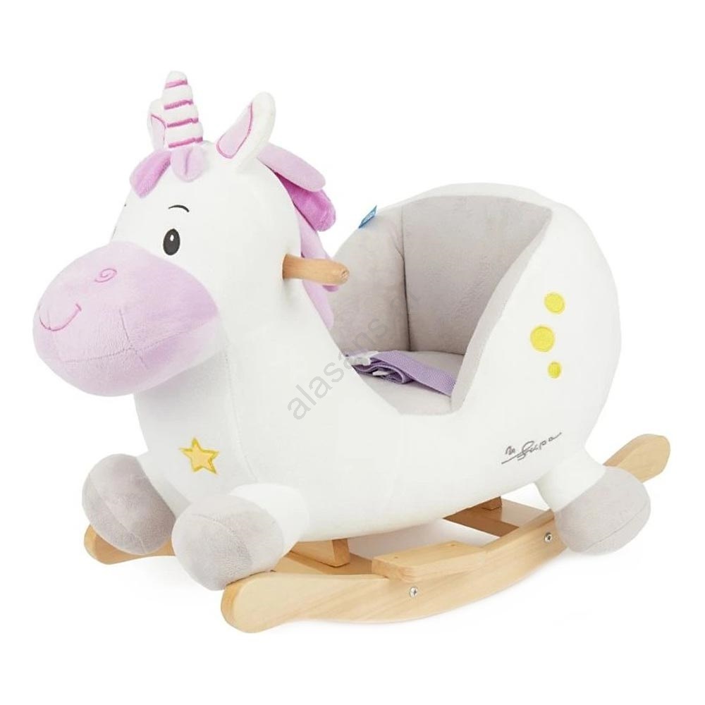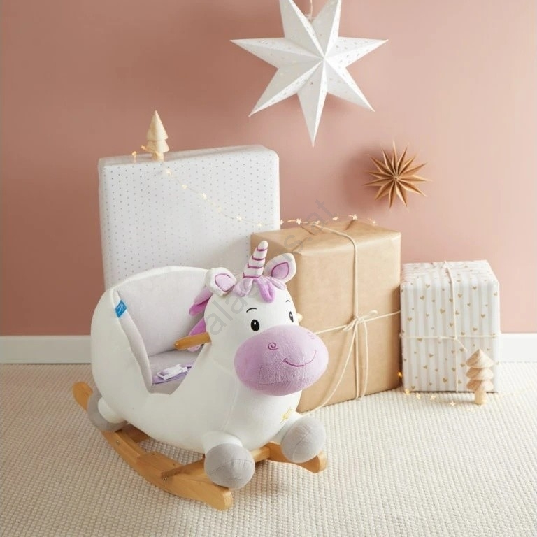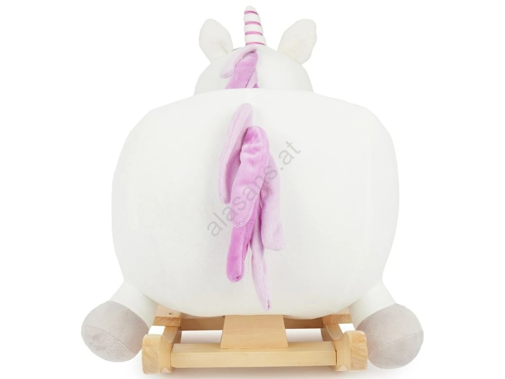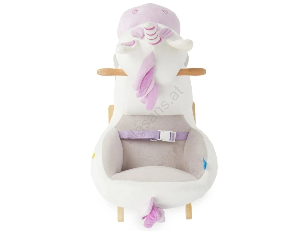 • Das Einhorn ist mit einem weichen, bequem gepolsterten Sitz und einem Sicherheitsgurt ausgestattet, der auch den Kleinsten maximalen Komfort und Schutz bietet.
