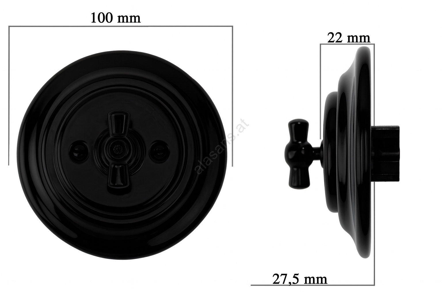 Bohemia-Design - Retro-Porzellan-Drehschalter mit Rahmen Nr. 7, schwarz