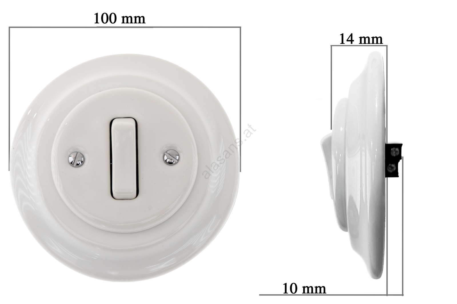 Bohemia-Design - Porzellan-Retro einpoliger Schalter mit Rahmen Nr. 7, weiß
