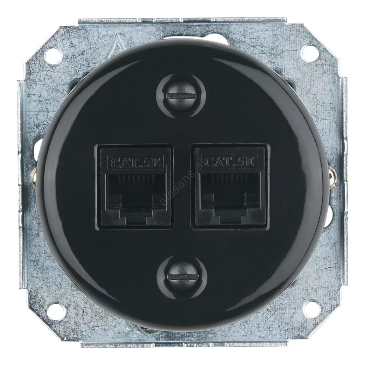 Bohemia-Design - Porzellan-Retro-Ethernetdose, rahmenlos, 2x CAT.5E, schwarz