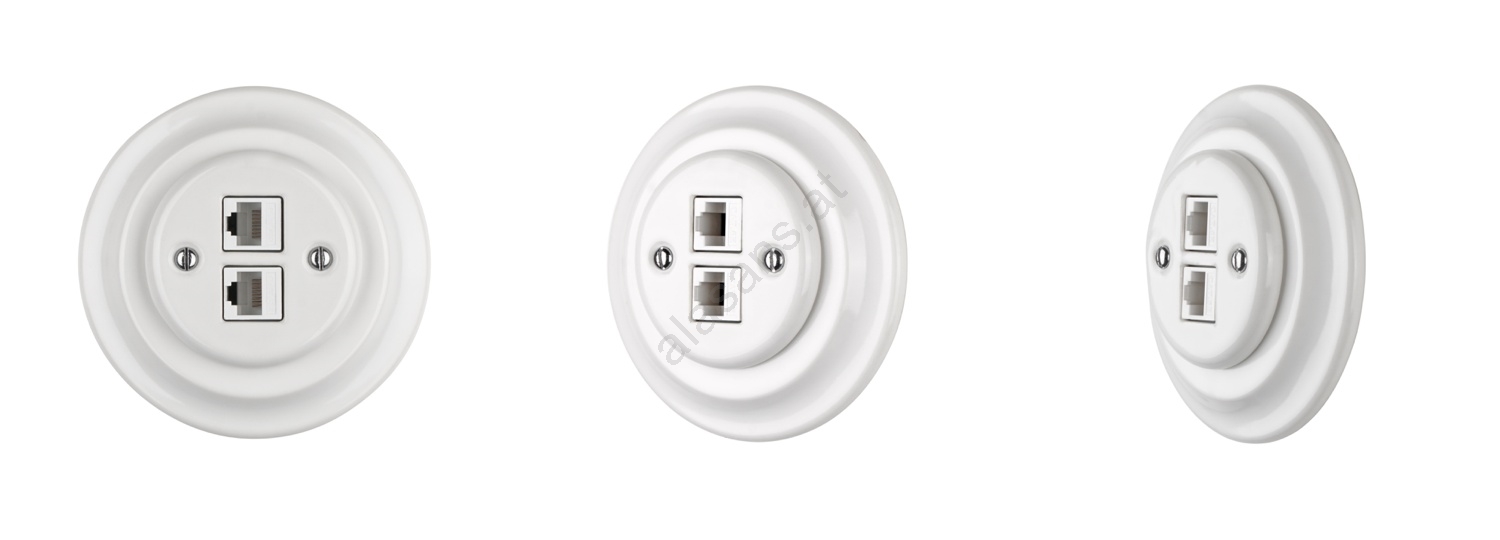 Bohemia-Design - Porzellan-Retro-Netzwerkdose mit Rahmen 2x CAT.5E weiß