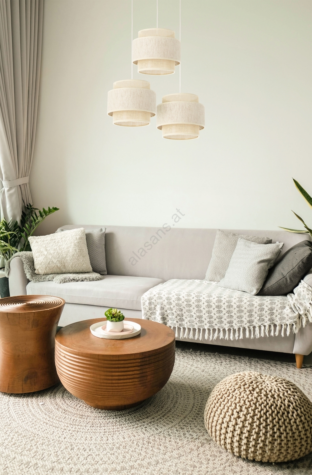 • Hängeleuchte an Kabel BOHO 3xE27/60W/230V Jute/Creme