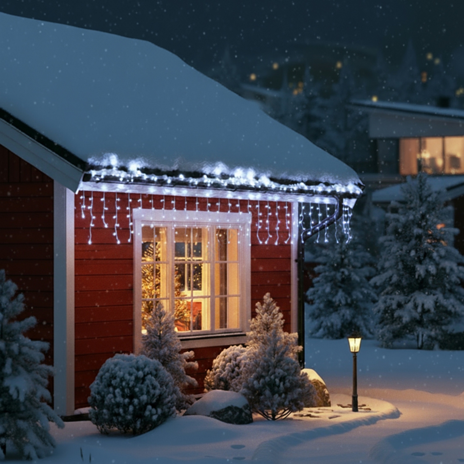 Brilagi - LED-Weihnachts-Lichterkette für den Außenbereich, 200 LEDs, 8 Funktionen, 13 m, IP44, kaltweiß, Eiszapfen