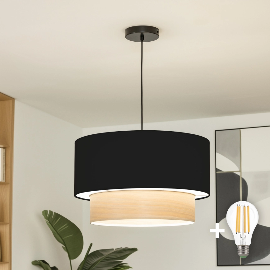 • Brilagi - LED-Pendelleuchte an Kabel CERIA 1xE27/40W/230V Ø 50 cm schwarz/beige