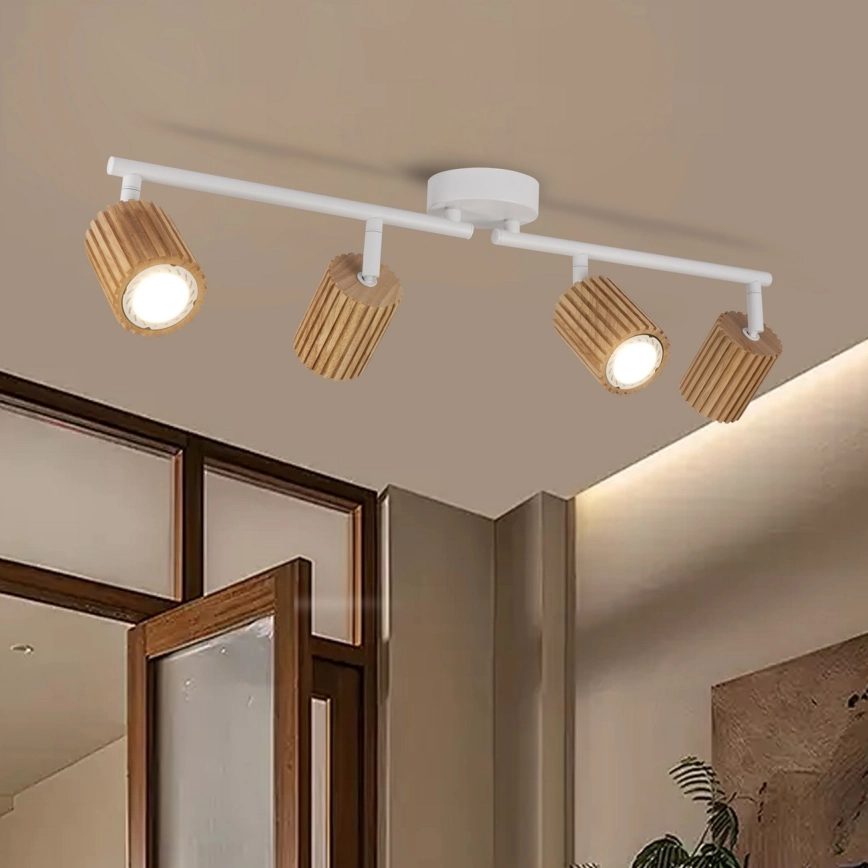 Brilagi - Spotleuchte MODERN WOOD 4xGU10/8W/230V Gummibaumholz/weiß