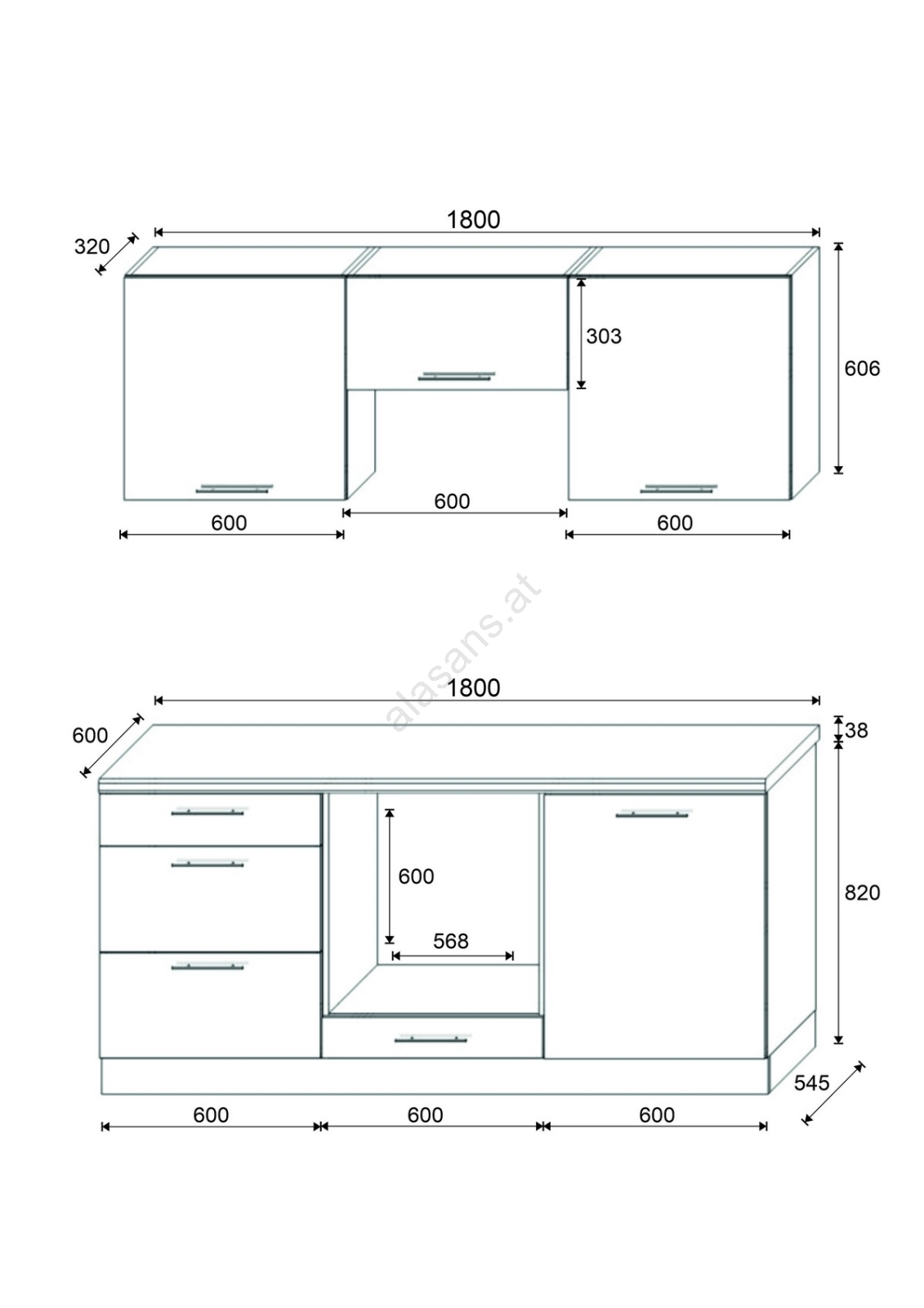 • Elektrogeräte, die Spüle und die Küchenarmatur sind nicht enthalten.