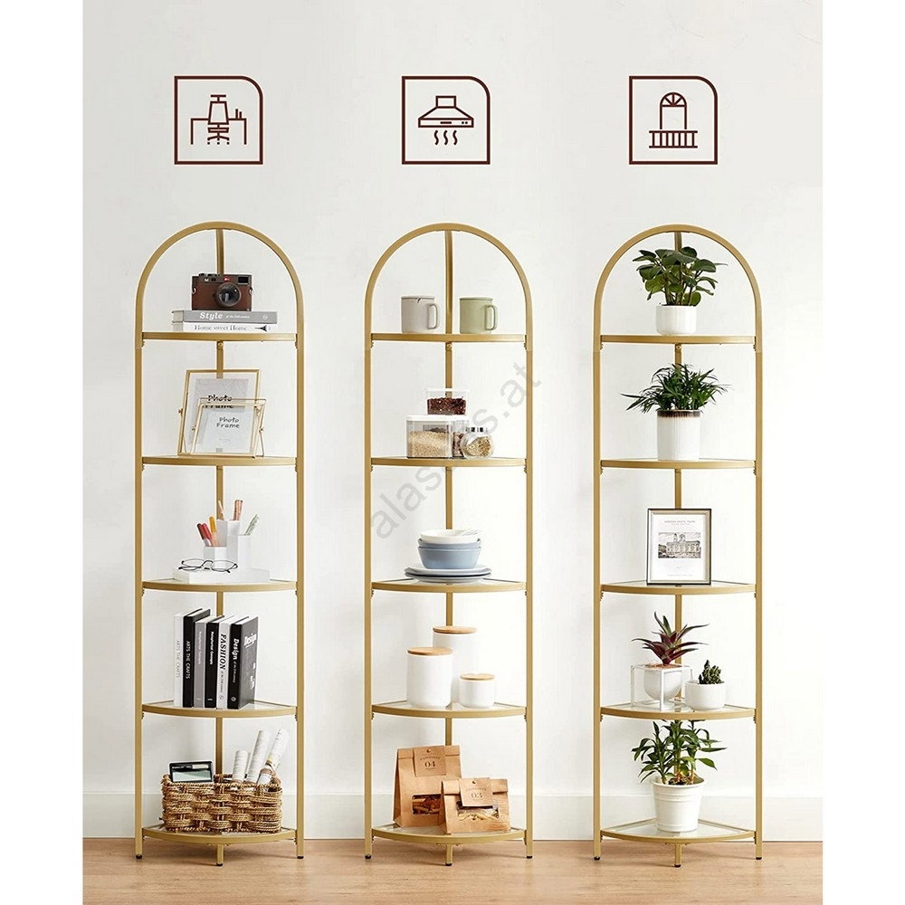 • Dank 5 Ablagen (jeweils mit einer Tragfähigkeit von bis zu 5 kg) können Sie darauf Bücher, Figuren, Dekorationen und weitere Ausstellungsstücke unterbringen.
