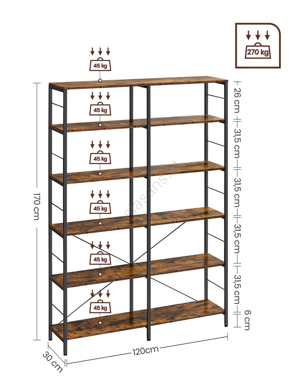 • Das mitgelieferte Anti-Kipp-Set ermöglicht die Wandbefestigung des Regals, erhöht so seine Stabilität und verhindert ein Umkippen.