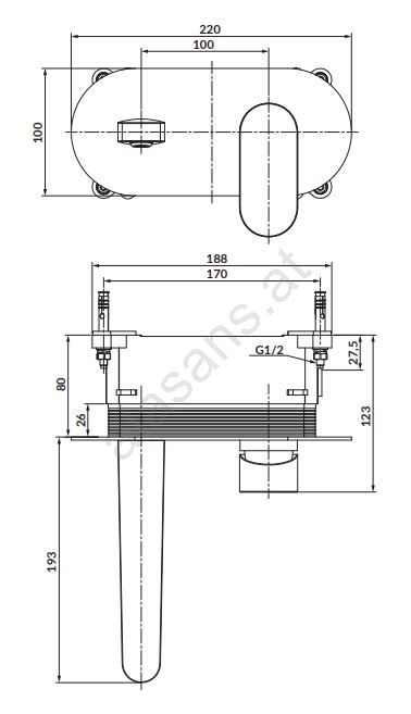 • Wandwaschbeckenarmatur für Unterputzmontage.