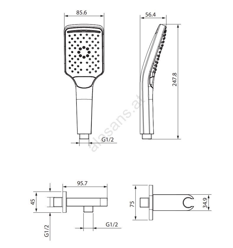 • Handbrause mit 3 Funktionen.