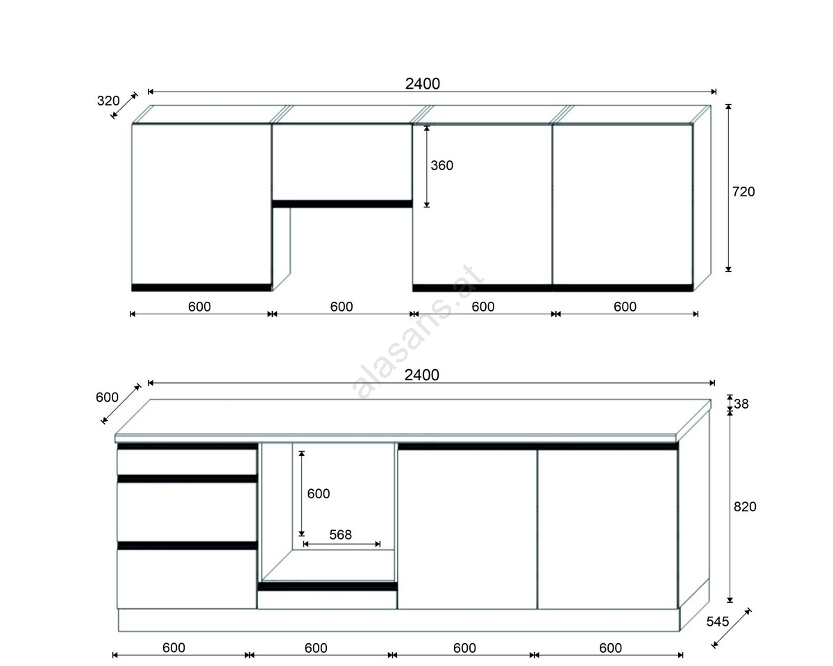 • Anordnung der Schränke ist modular, Sie können die Küche nach Ihren eigenen Vorstellungen anpassen.