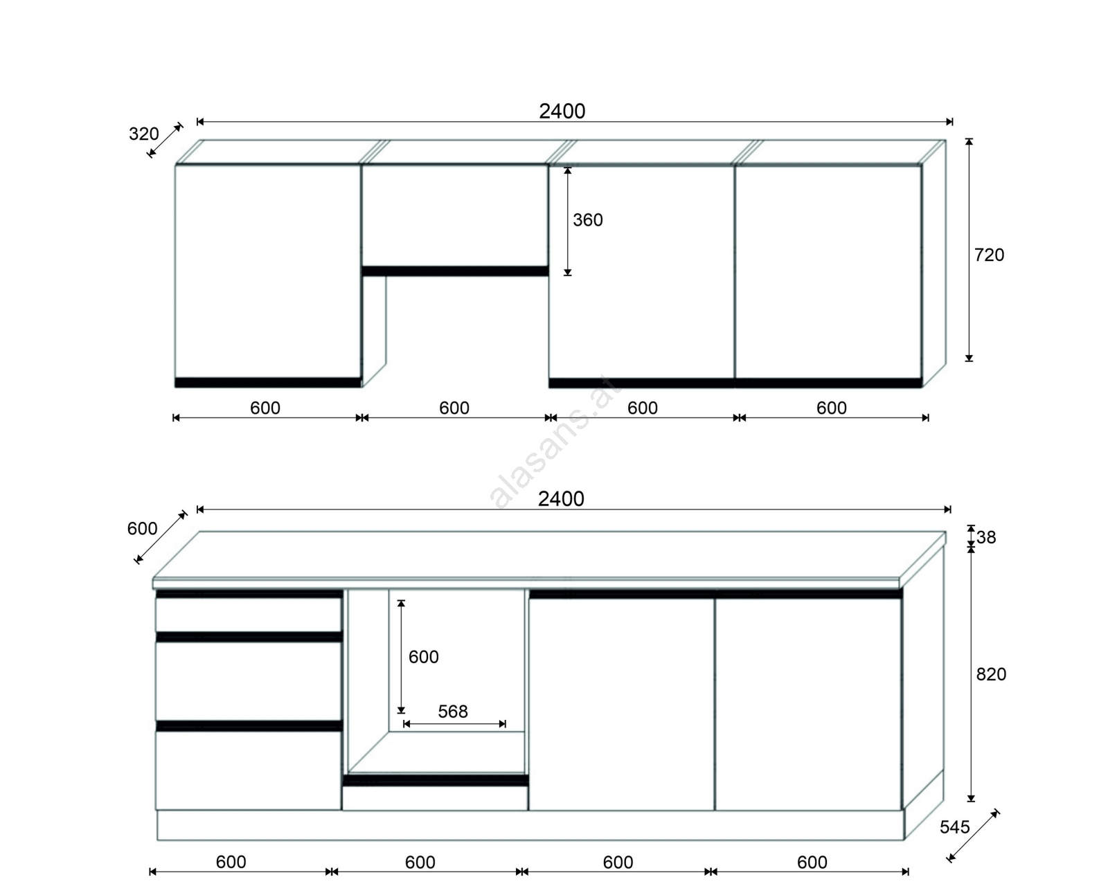 • DieAnordnung der Schränke ist modular, Sie können die Küche nach Ihren eigenen Vorstellungen gestalten.