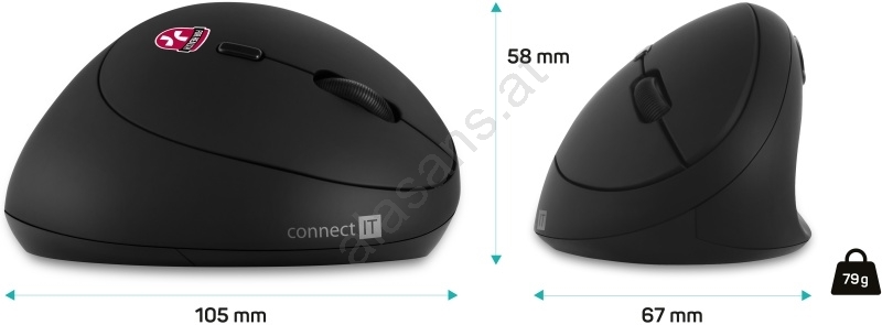 CONNECT IT CMO-2600-BK - Ergonomische kabellose Maus 800/1200/1600 DPI 1xAA schwarz