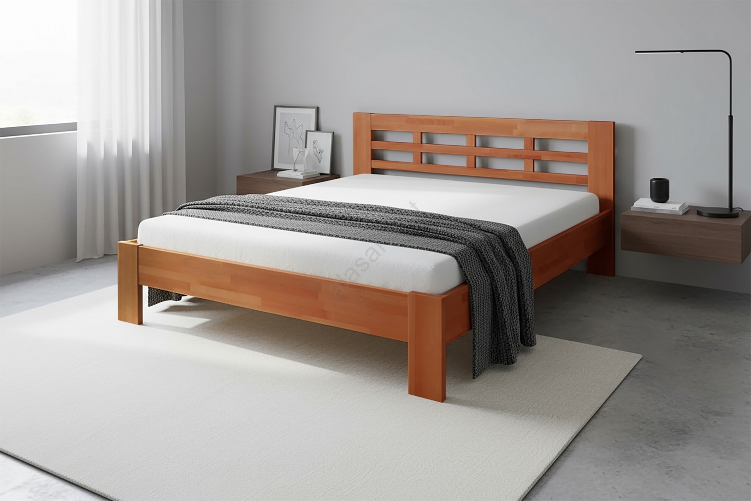 • Doppelbett aus Massivholz ANGELA 180x200 cm helles Nuss
