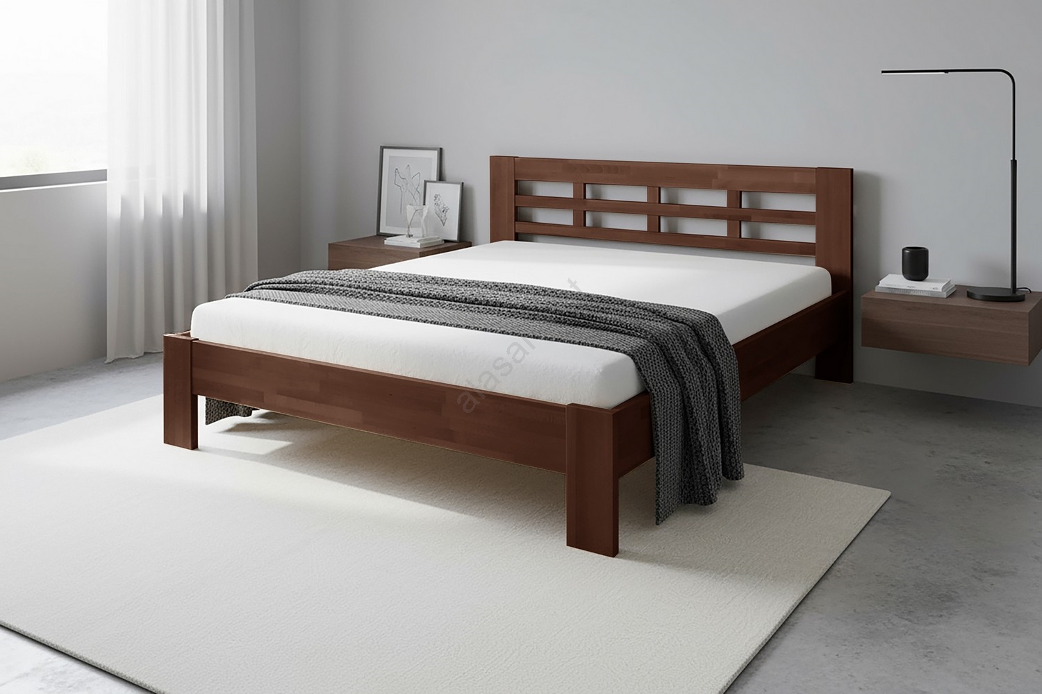 • Doppelbett aus massivem Holz ANGELA 180x200 cm Nussbaum dunkel