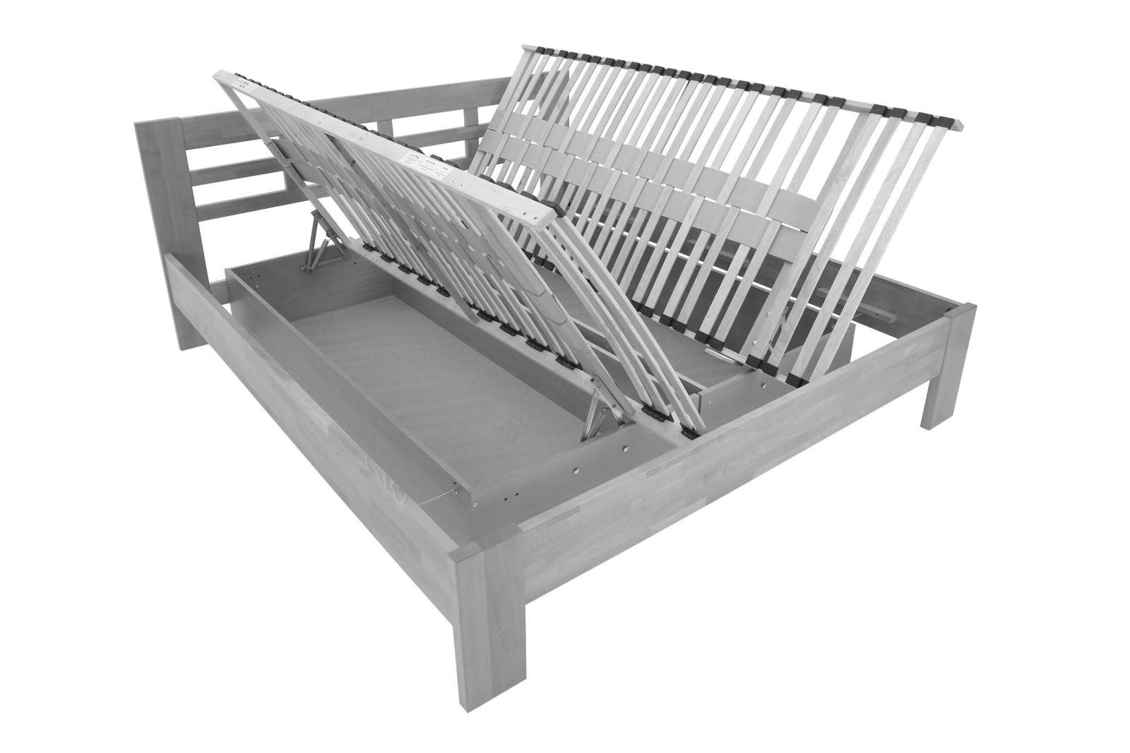 • Doppelbett aus massivem Holz mit Stauraum ANGELA 180x200 cm Buche