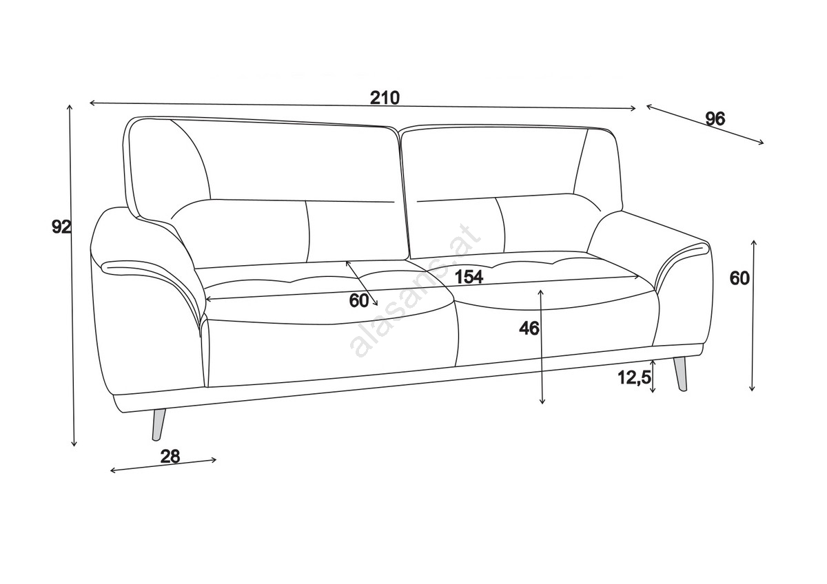 • Mit einer bequemen Sitzhöhe von 46 cm und einer Sitztiefe von 60 cm bietet es ergonomisches und entspannendes Sitzen.