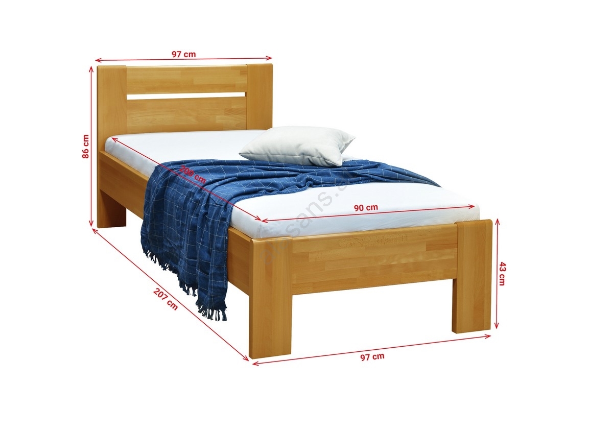 Einzelbett AMBER 90x200 cm, heller Nussbaum